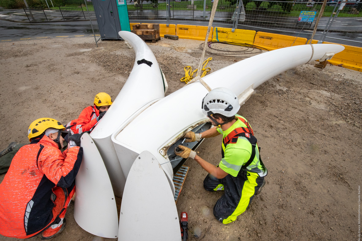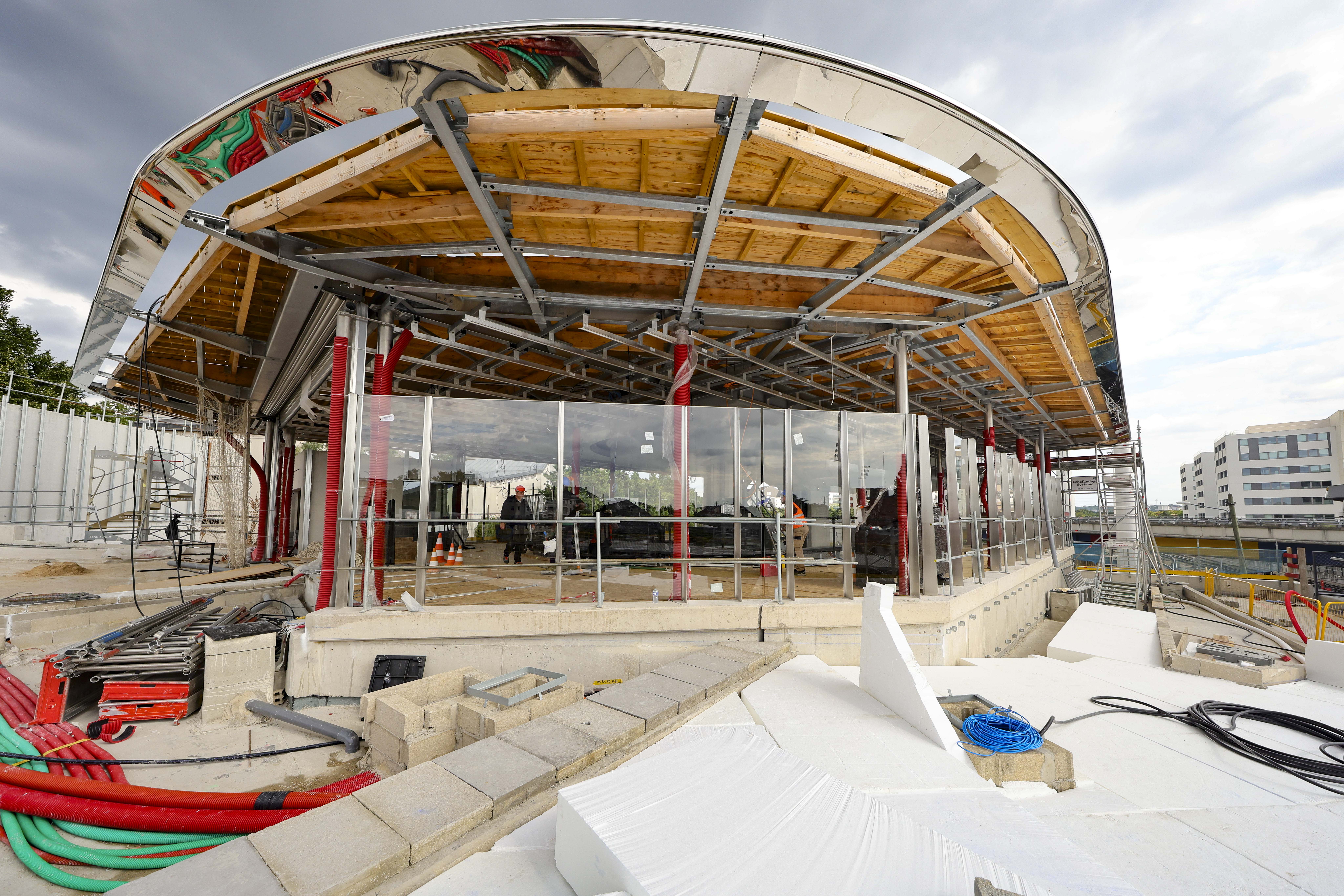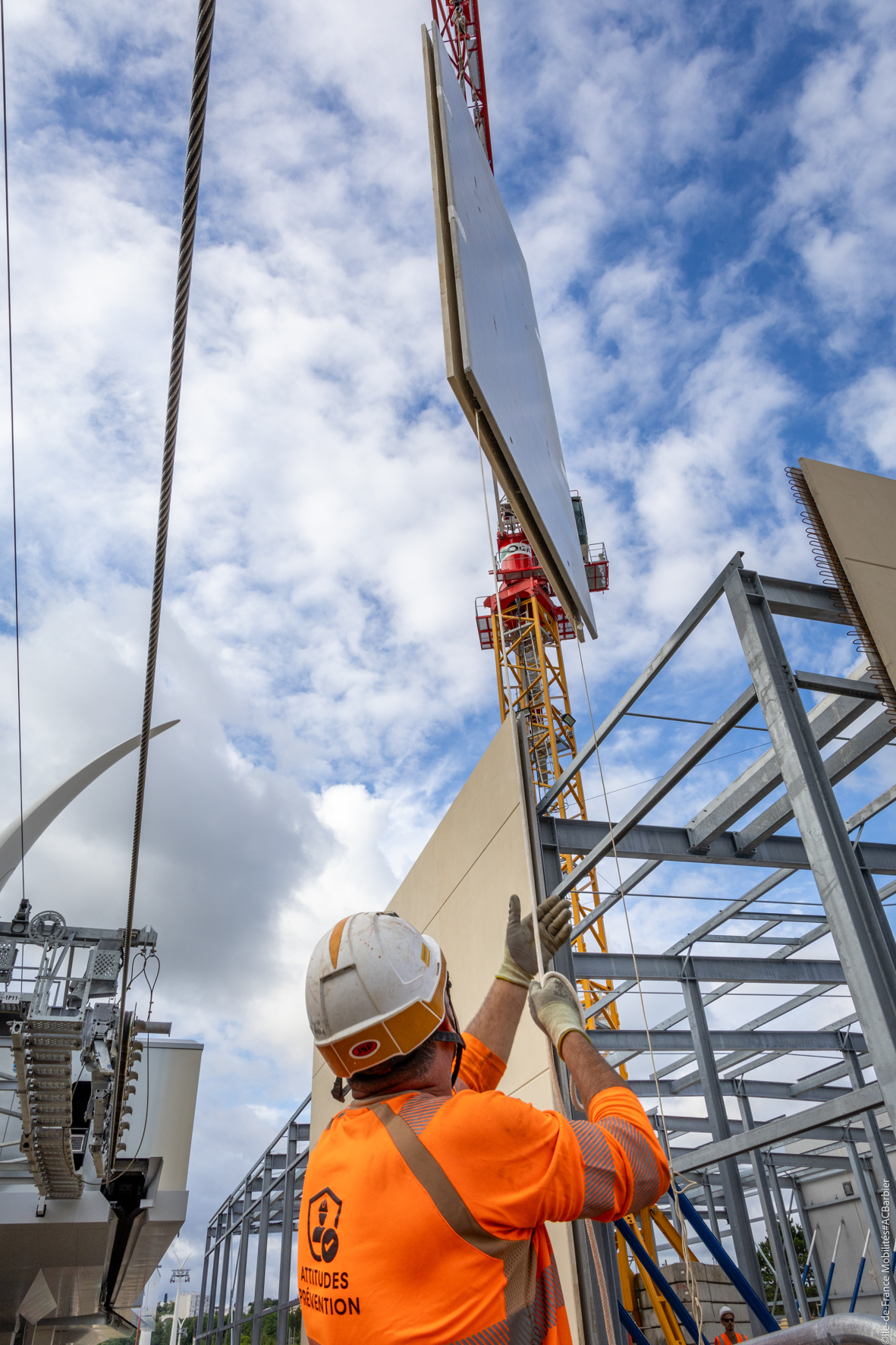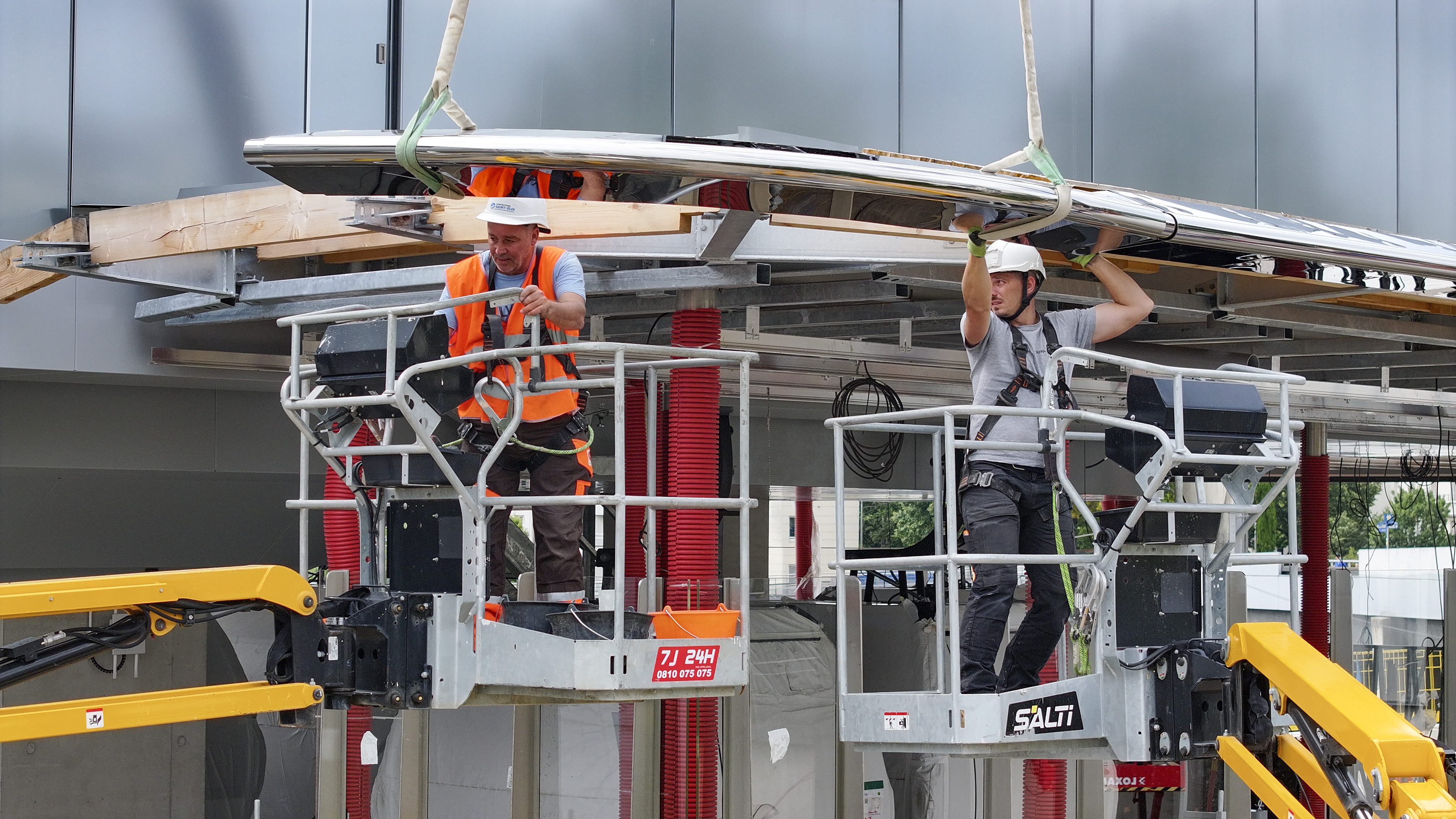 - © Île-de-France Mobilités - Anne-Claude Barbier | Pose de la toiture de la station Pointe du Lac - juillet 2024