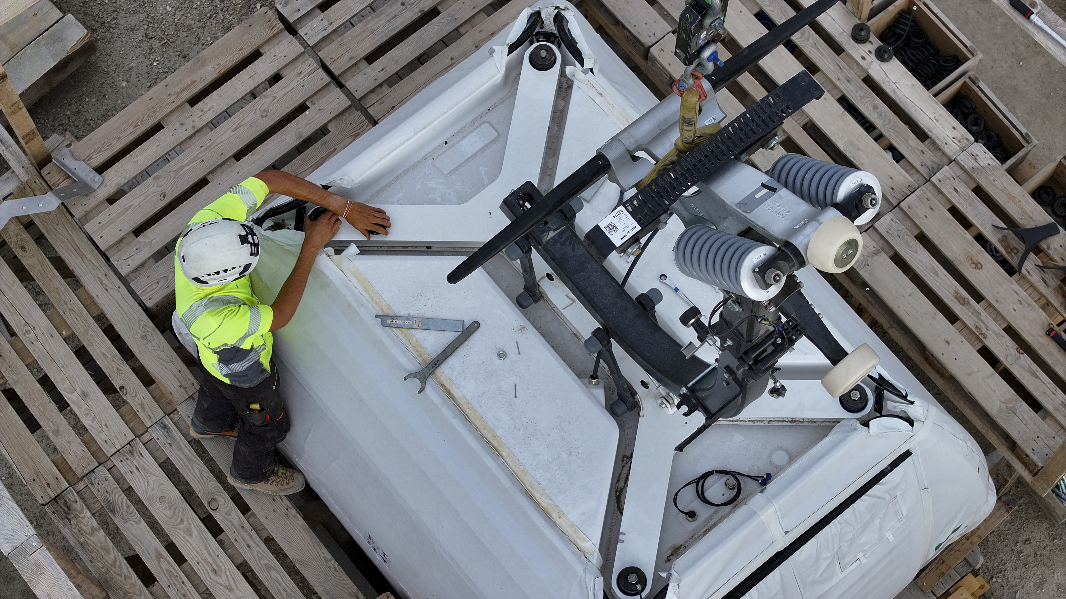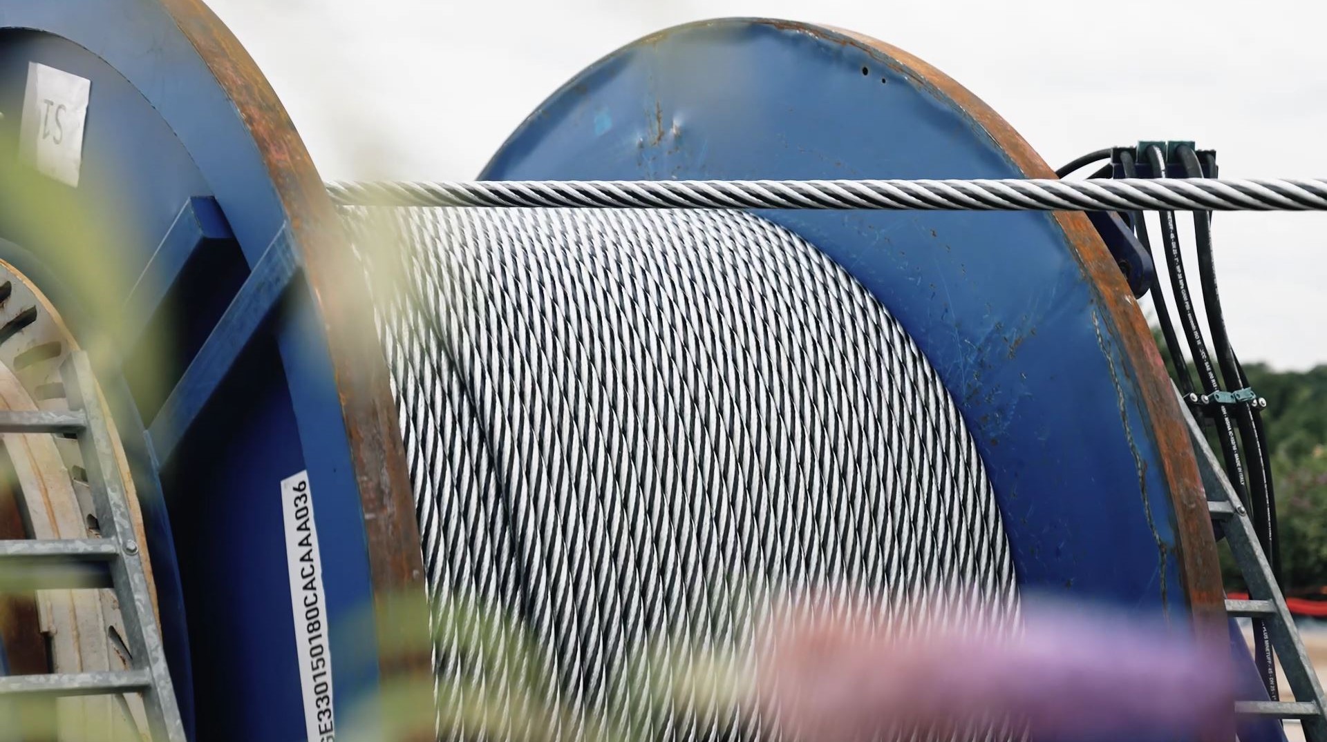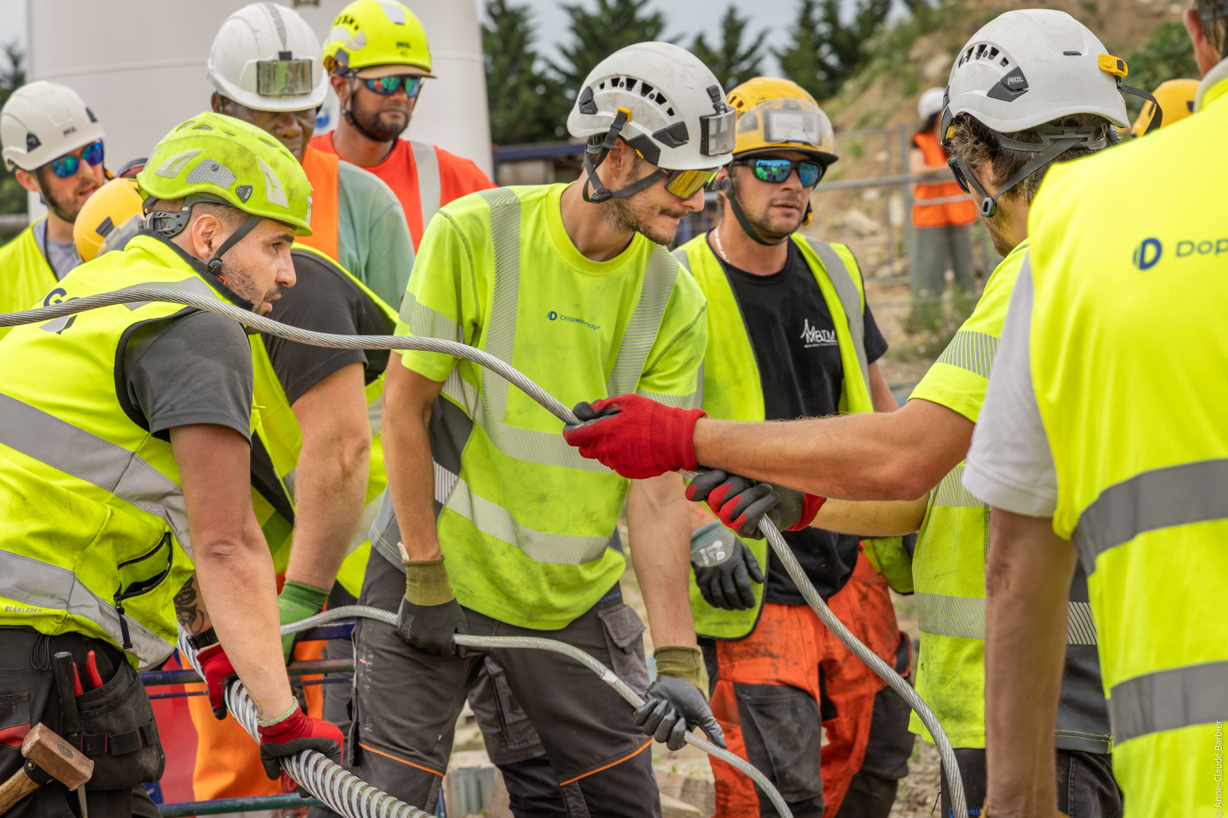 - ©Ile-de-France Mobilités - Doppel France - Anne-Claude Barbier | Déroulage du câble entre Pointe du Lac et Limeil-Brévannes - juillet 2024