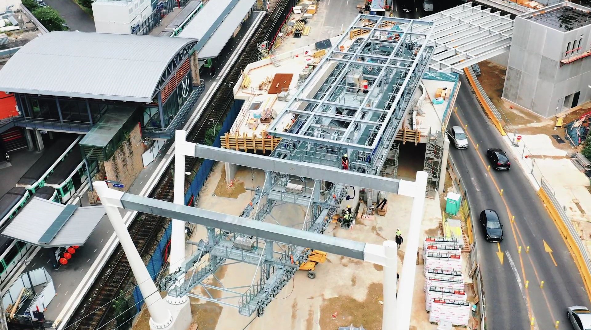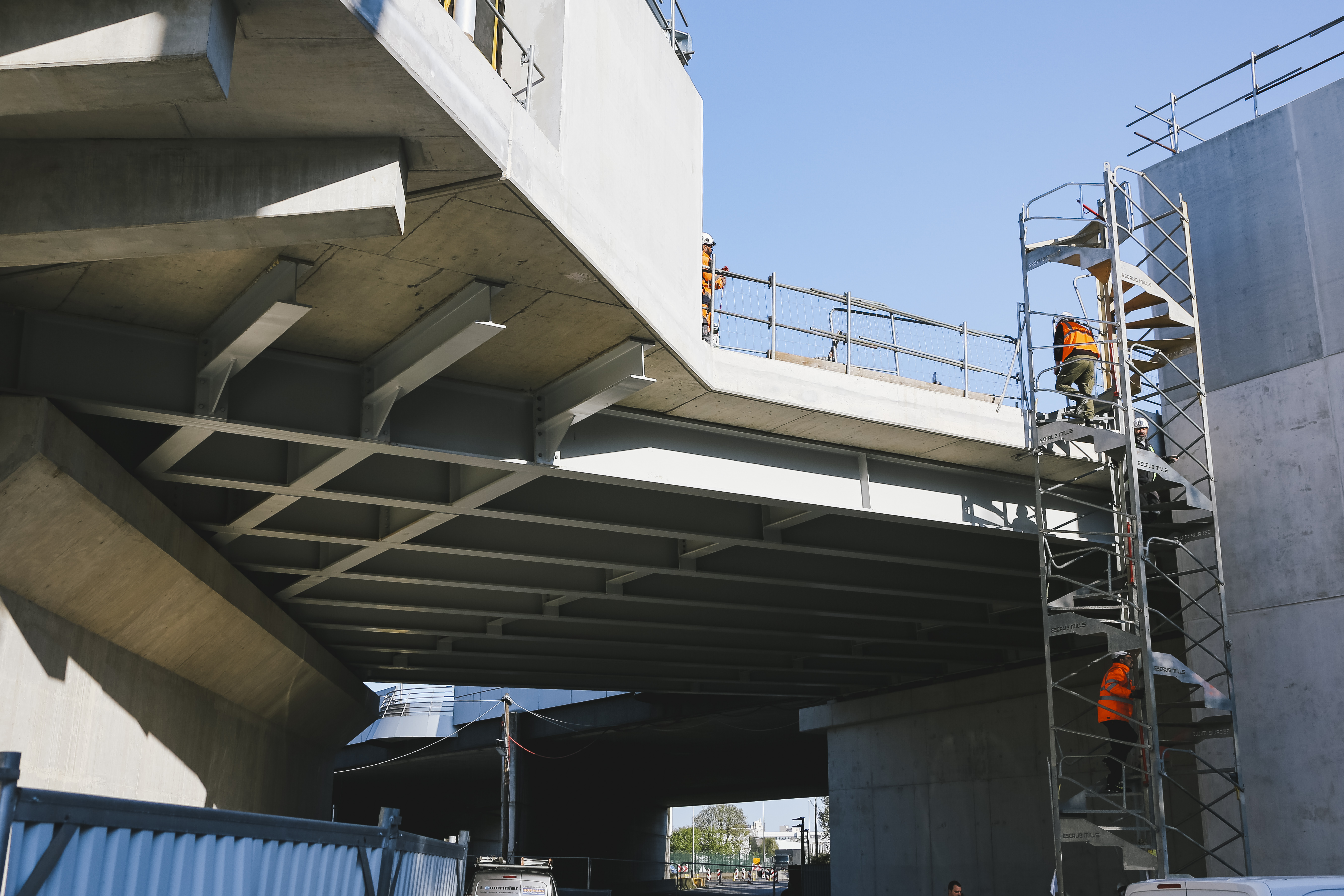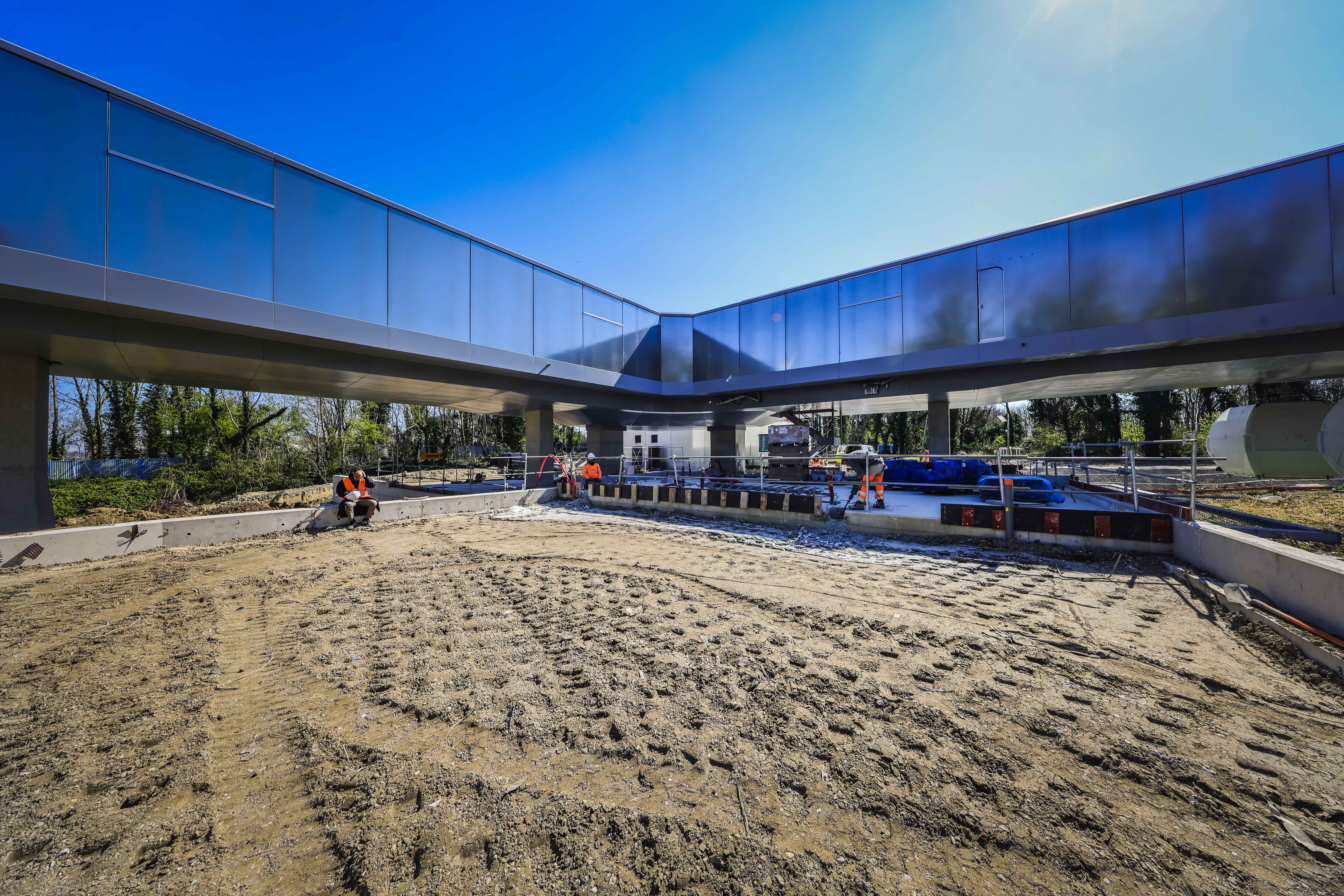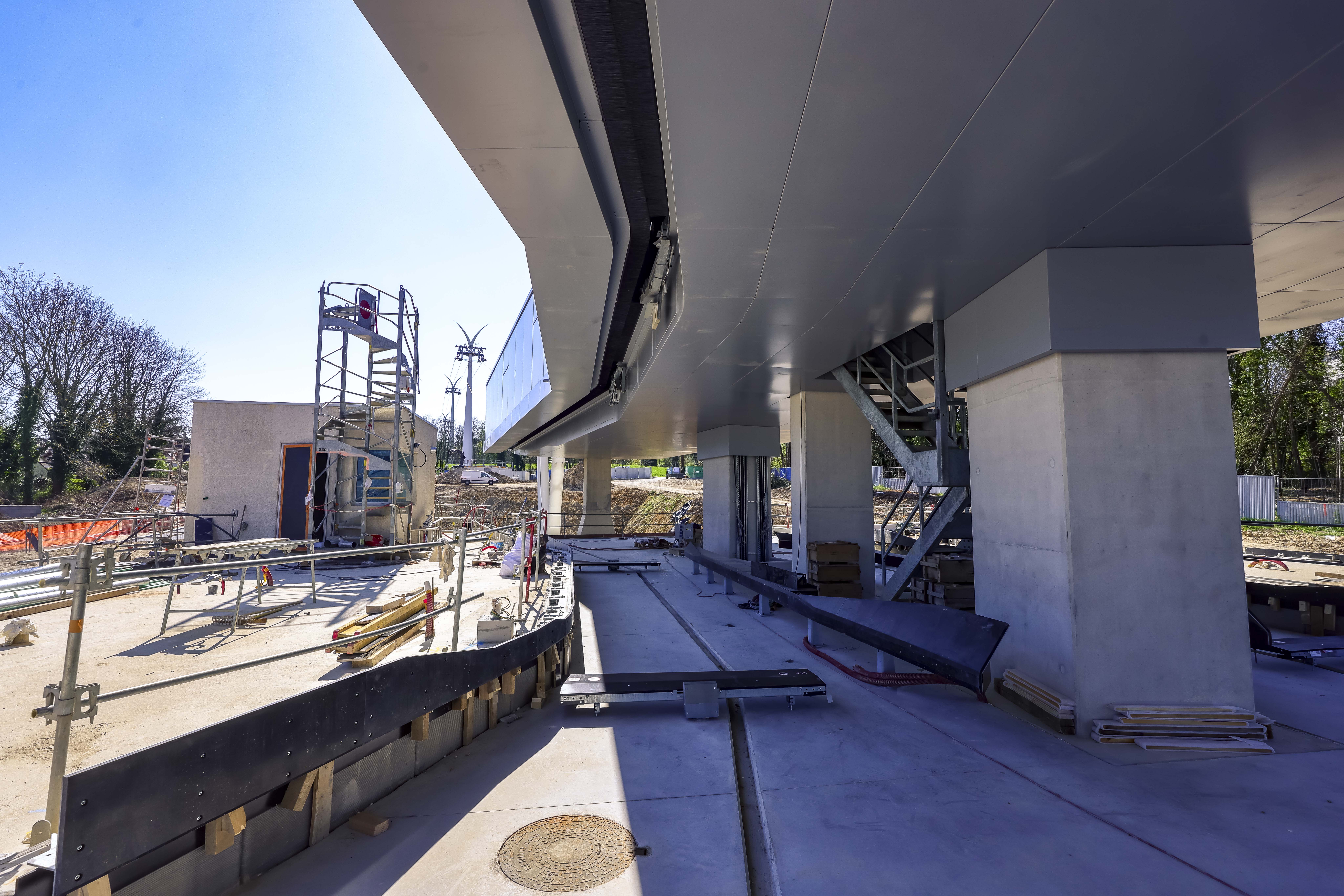 - ©Île-de-France Mobilités & RATP – Julien Lévêque | Construction de la passerelle d'union entre la station C1 Pointe du Lac et le métro 8 - octobre 2024