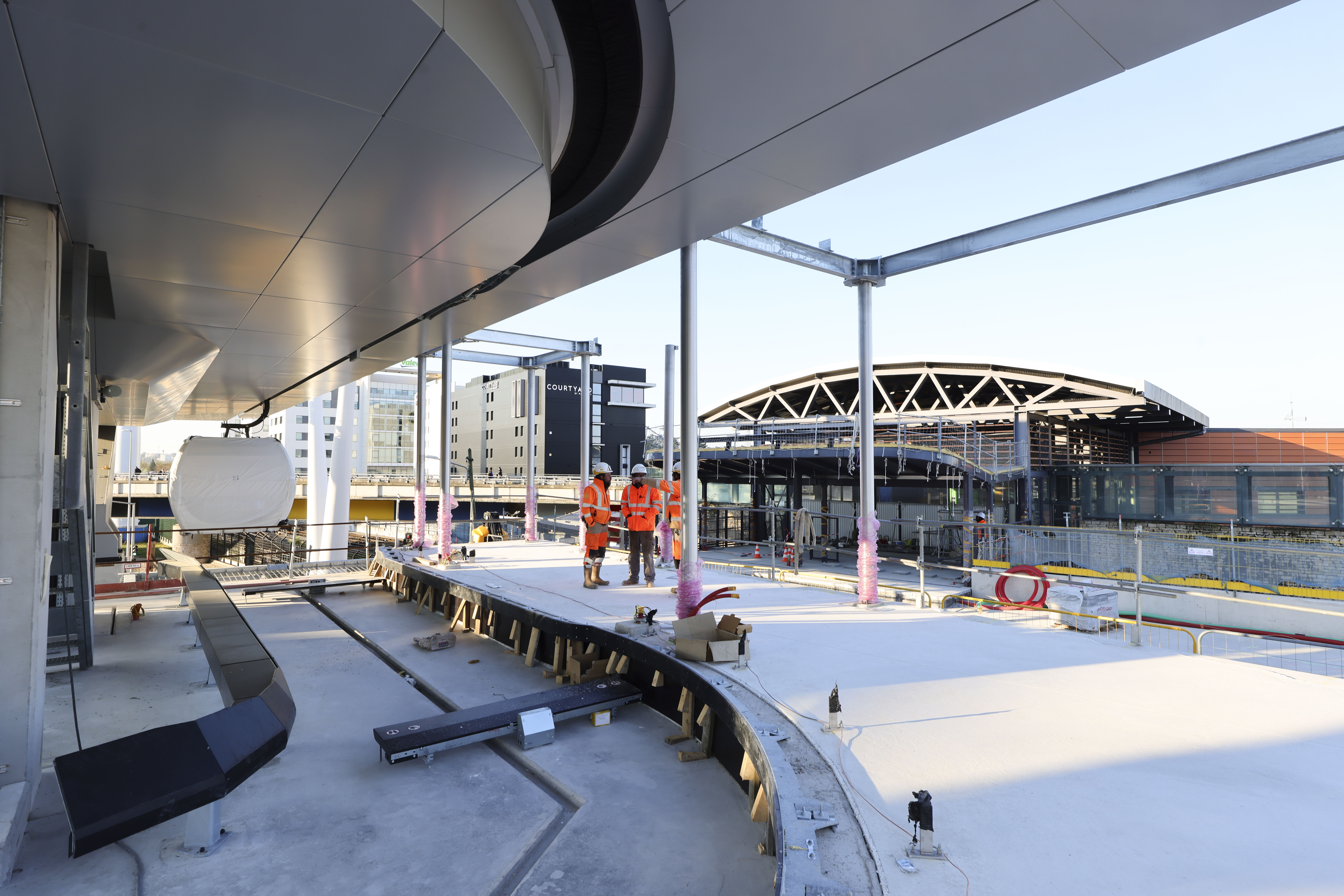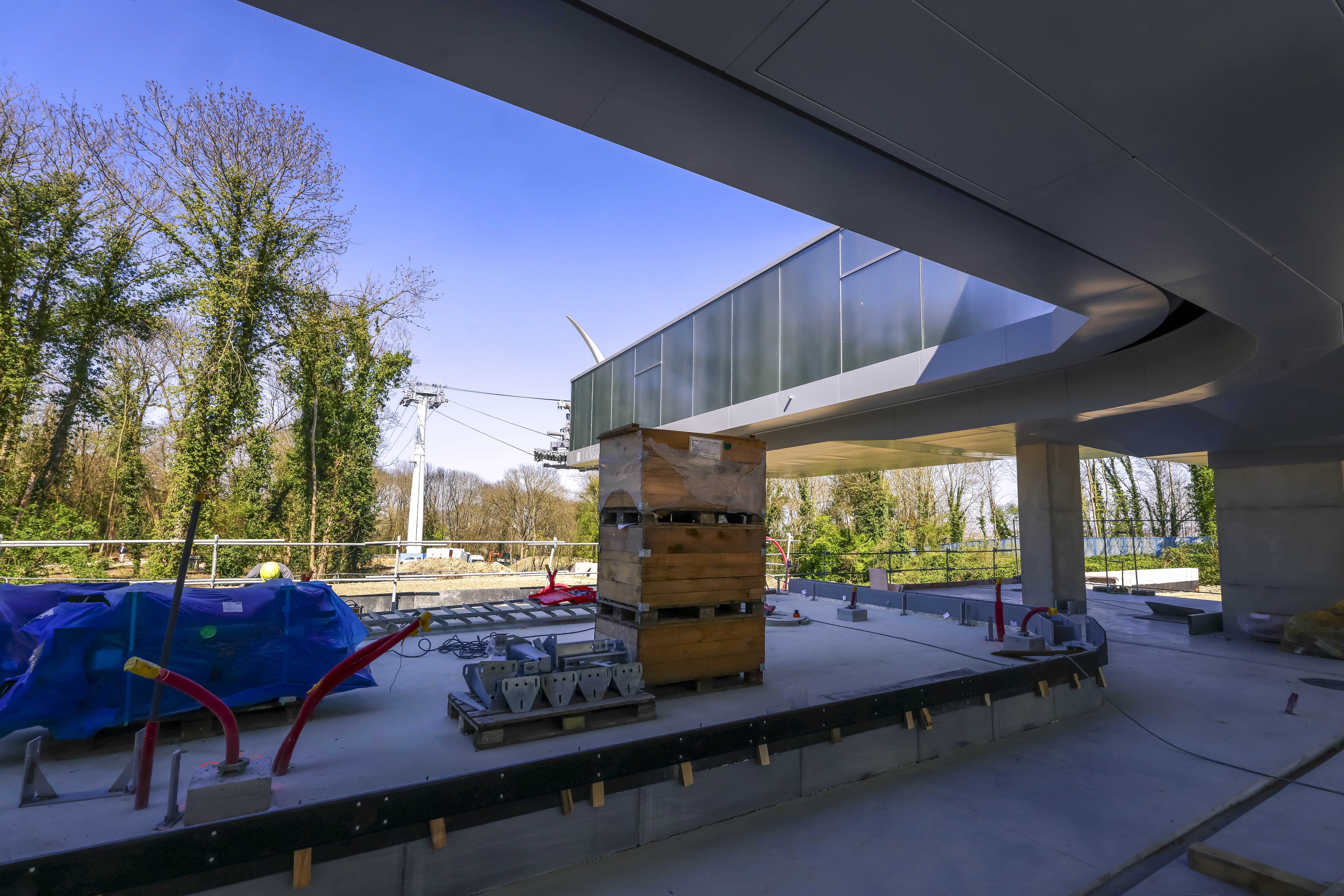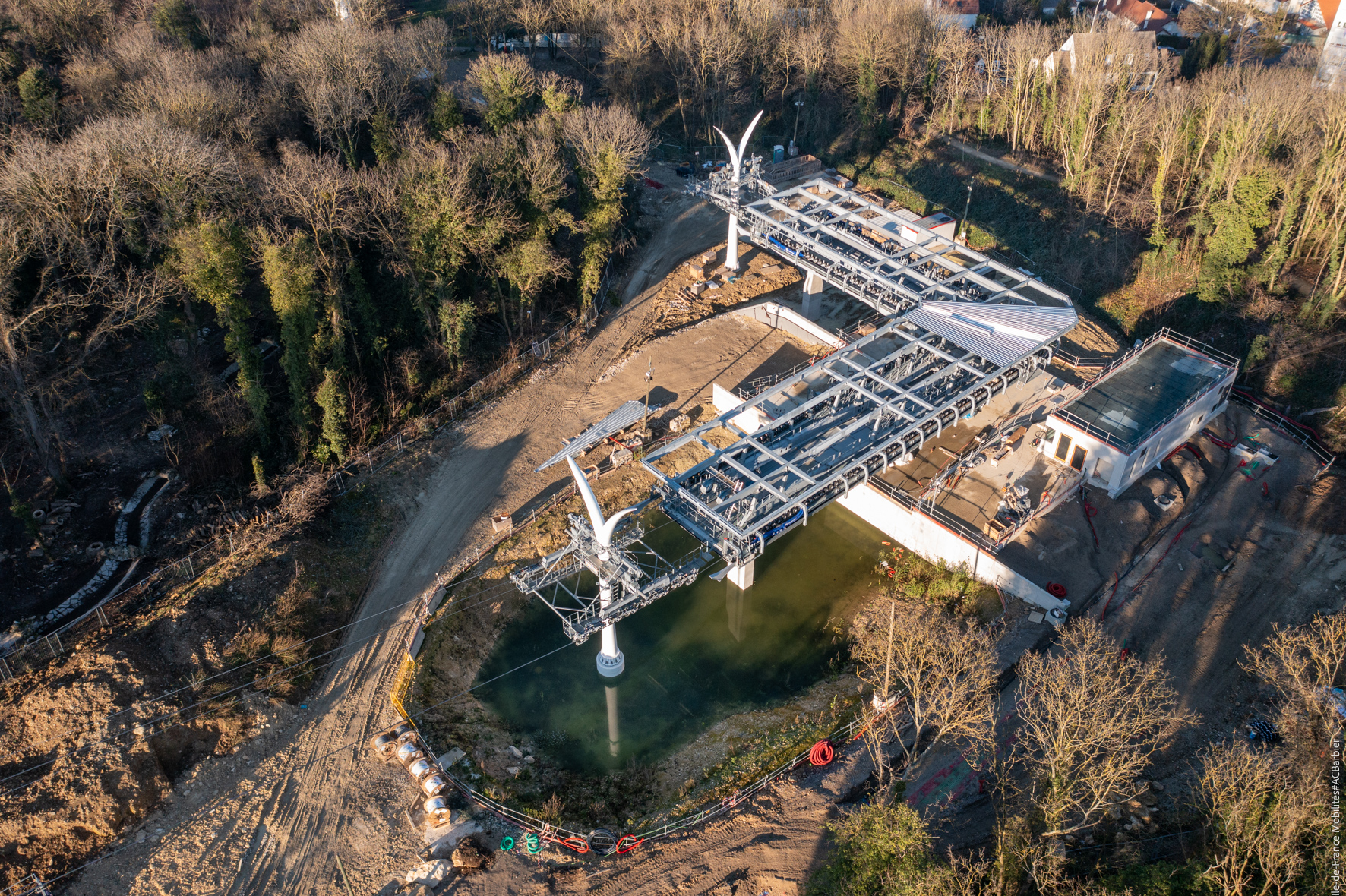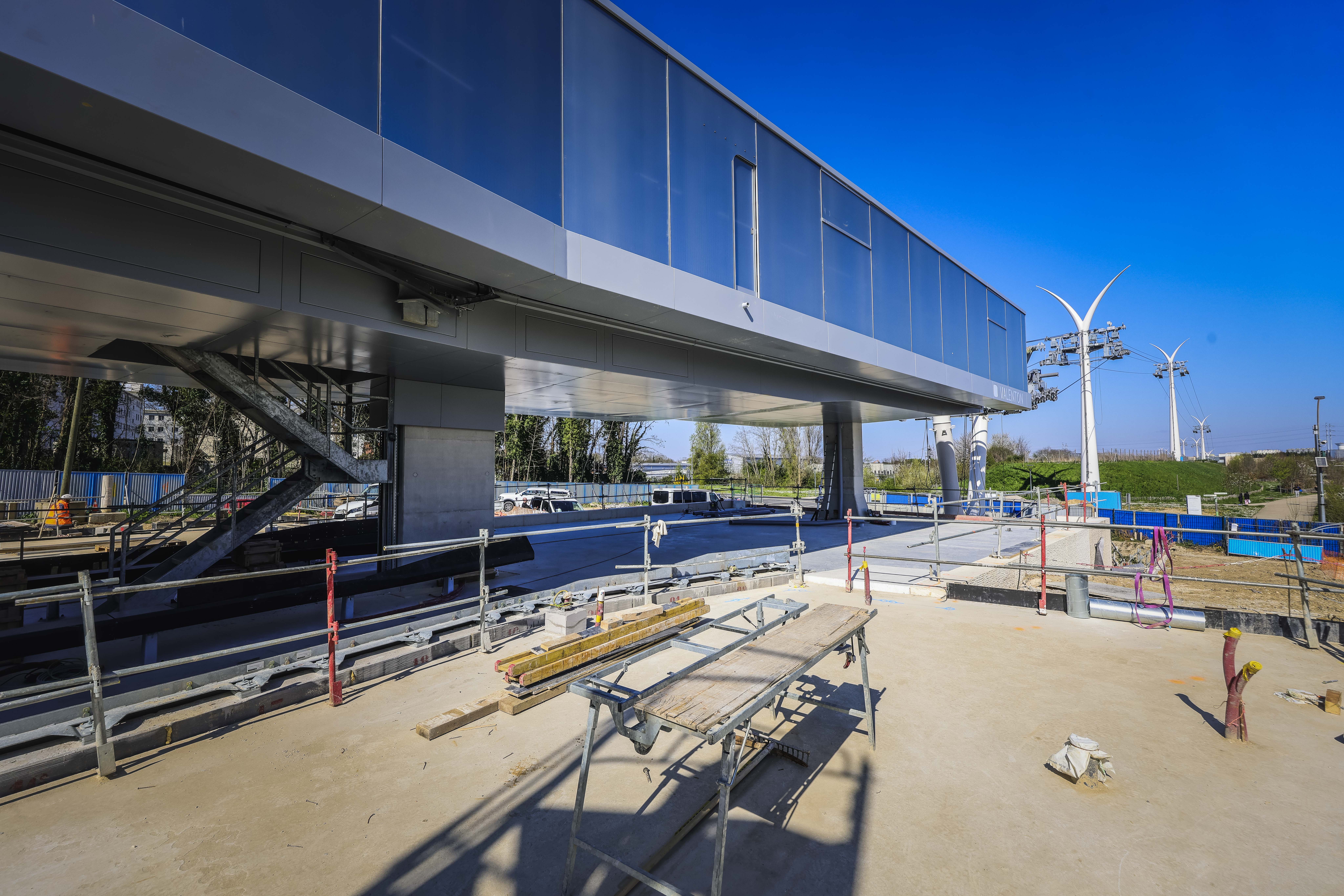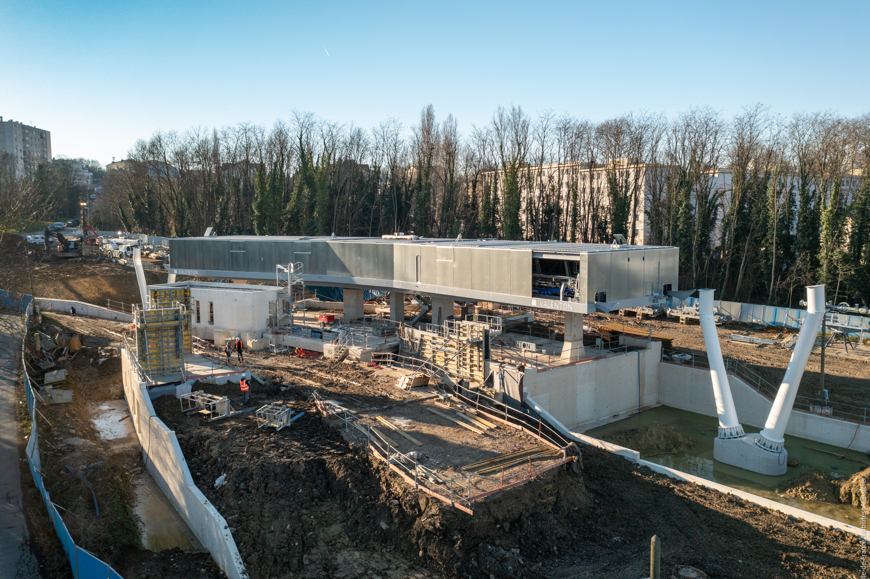 - ©Île-de-France Mobilités & RATP – Julien Lévêque | Construction de la passerelle d'union entre la station C1 Pointe du Lac et le métro 8 - octobre 2024