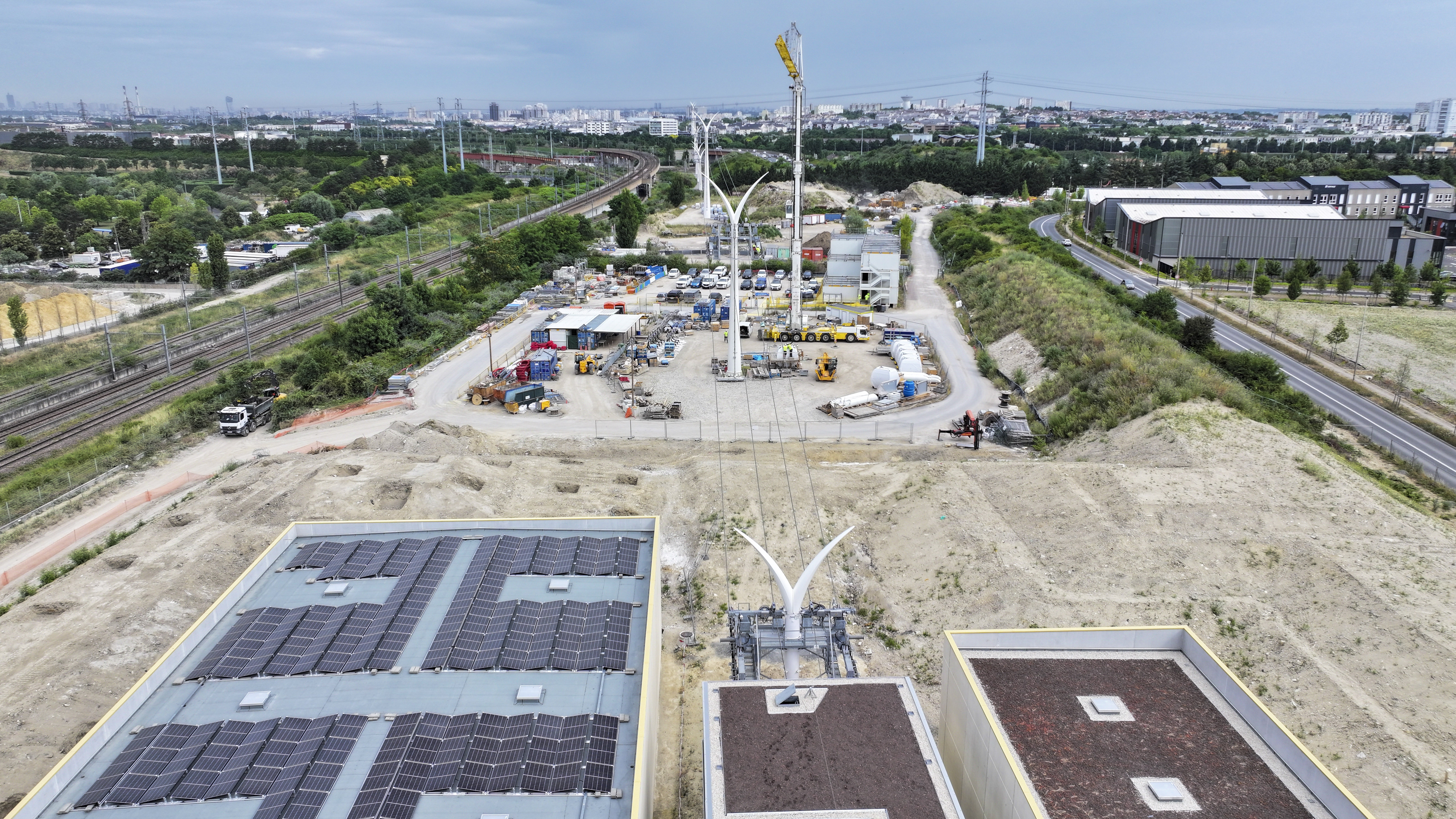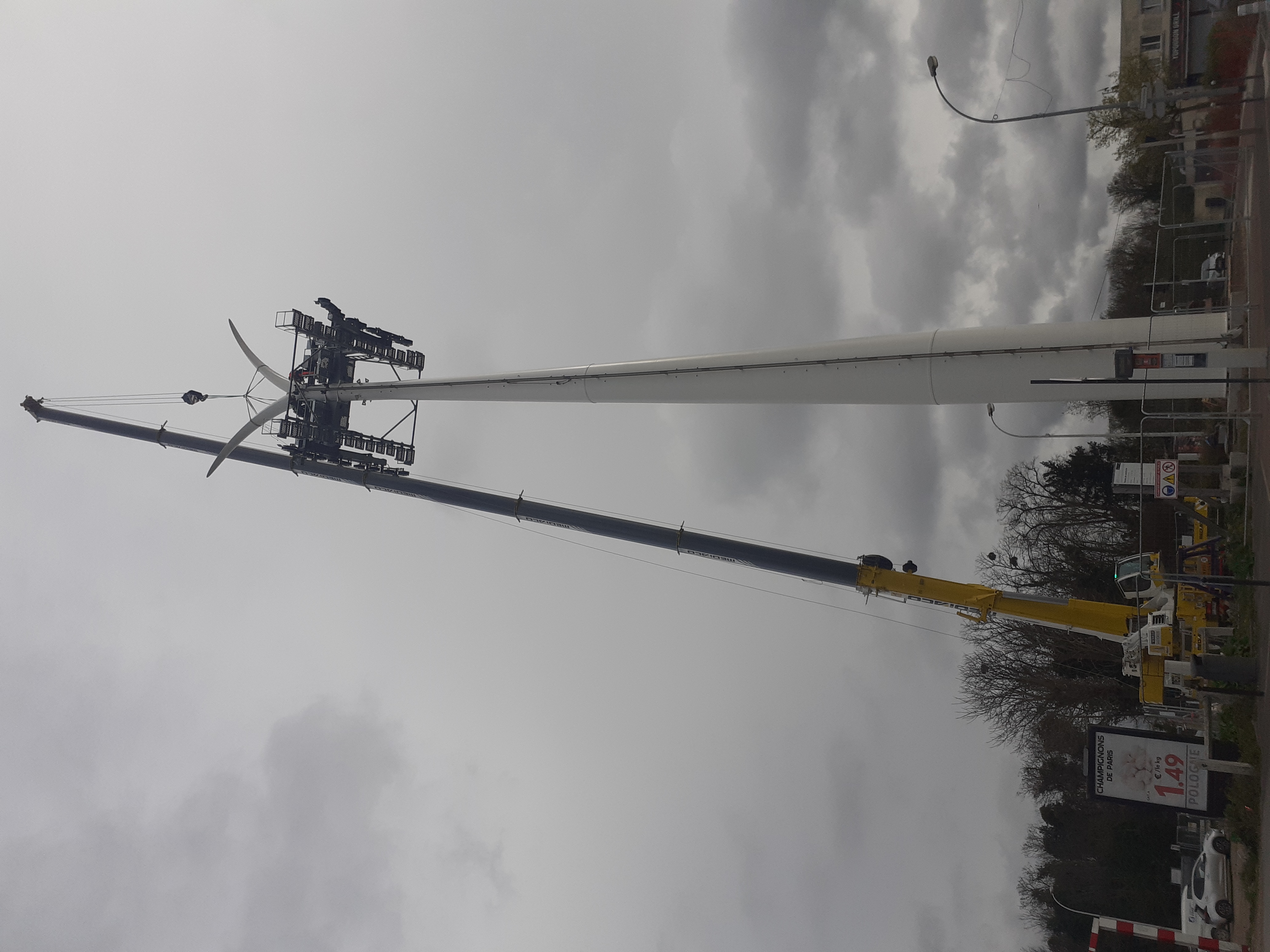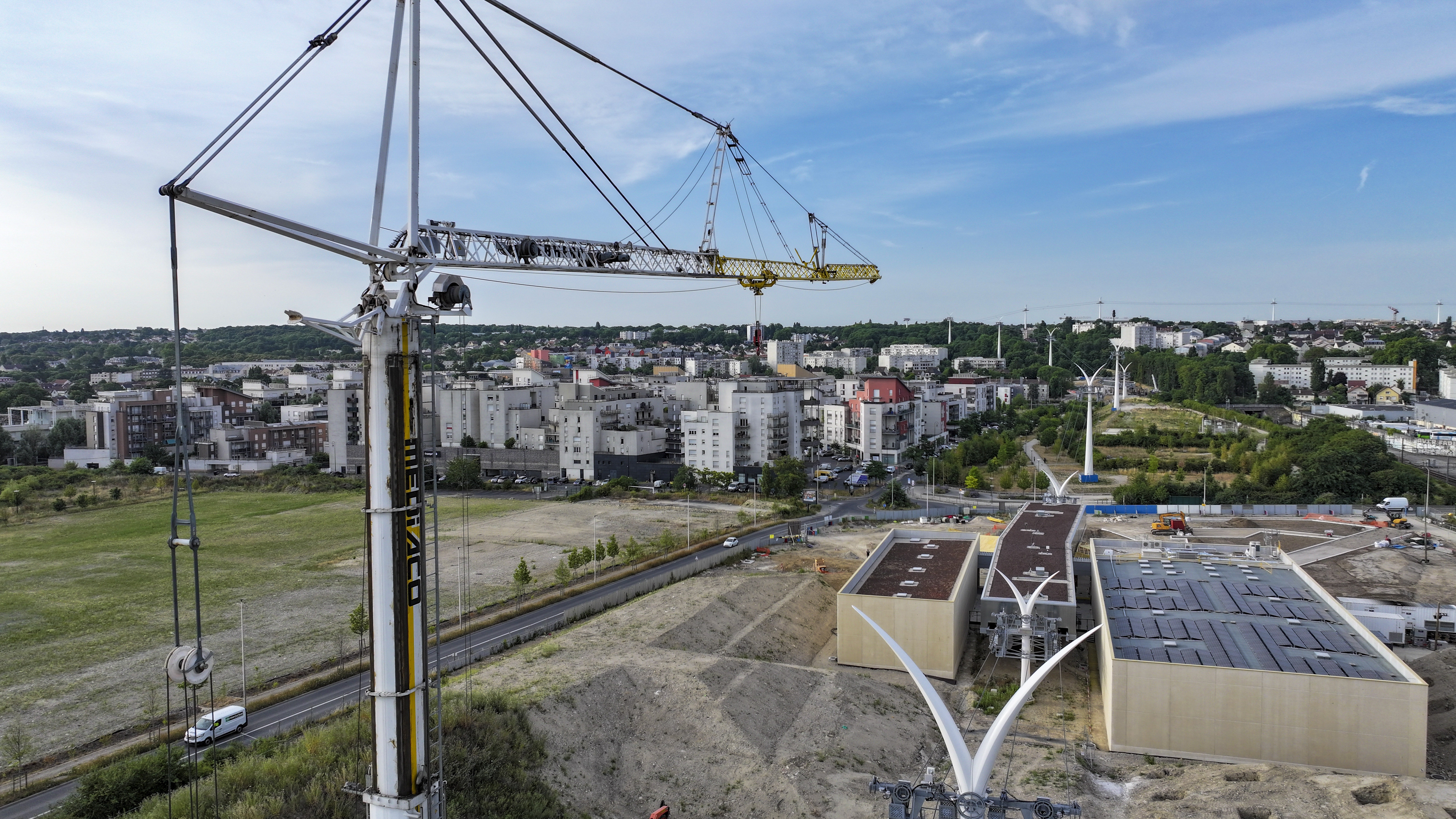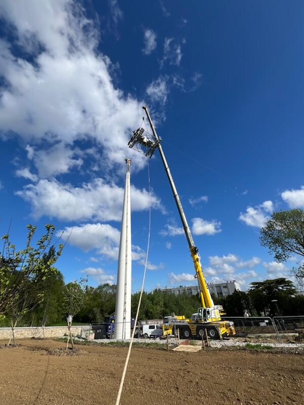 - © Île-de-France Mobilités | Levage d'un pylône de 42 mètres, aux abords de La Végétale - avril 2024