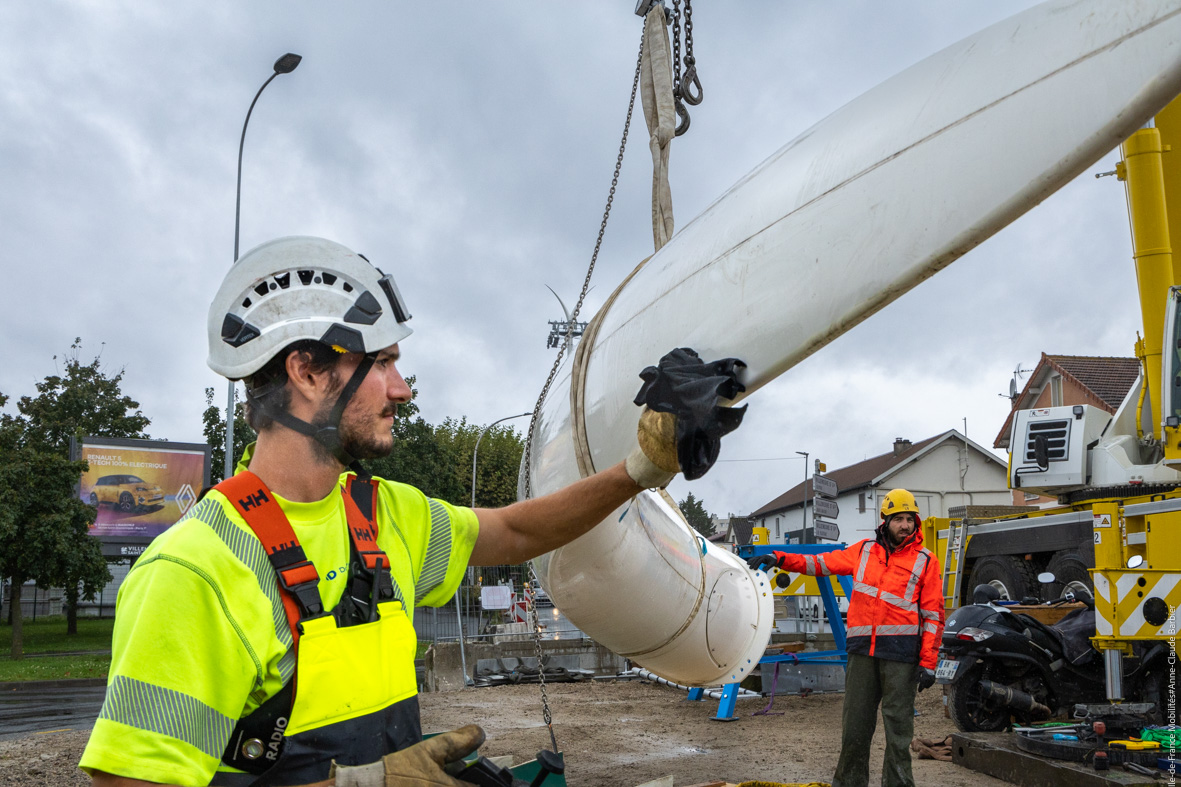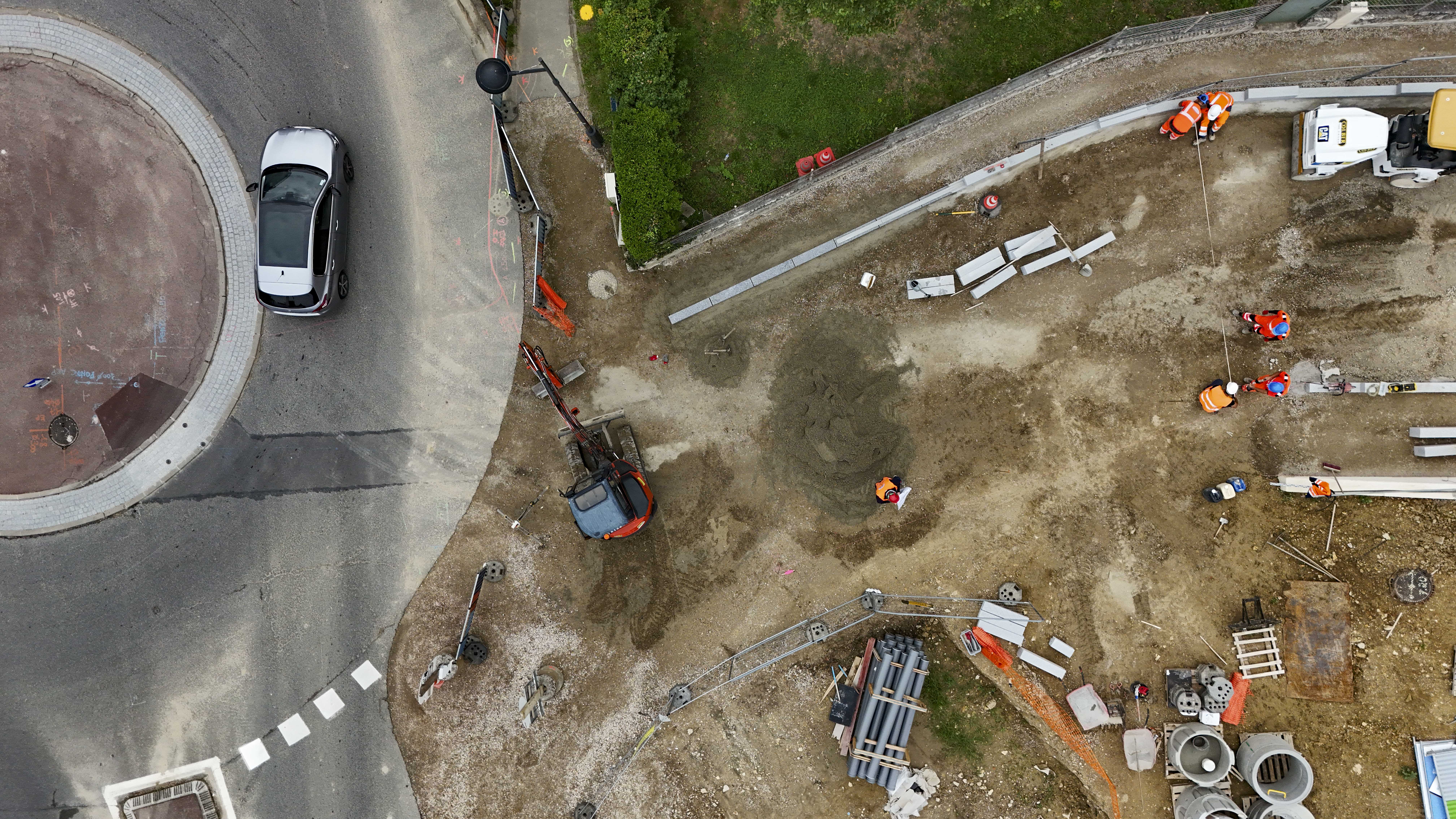 - © Île-de-France Mobilités | Levage d'un pylône sur un rond-point à Villeneuve-Saint-Georges - septembre 2024