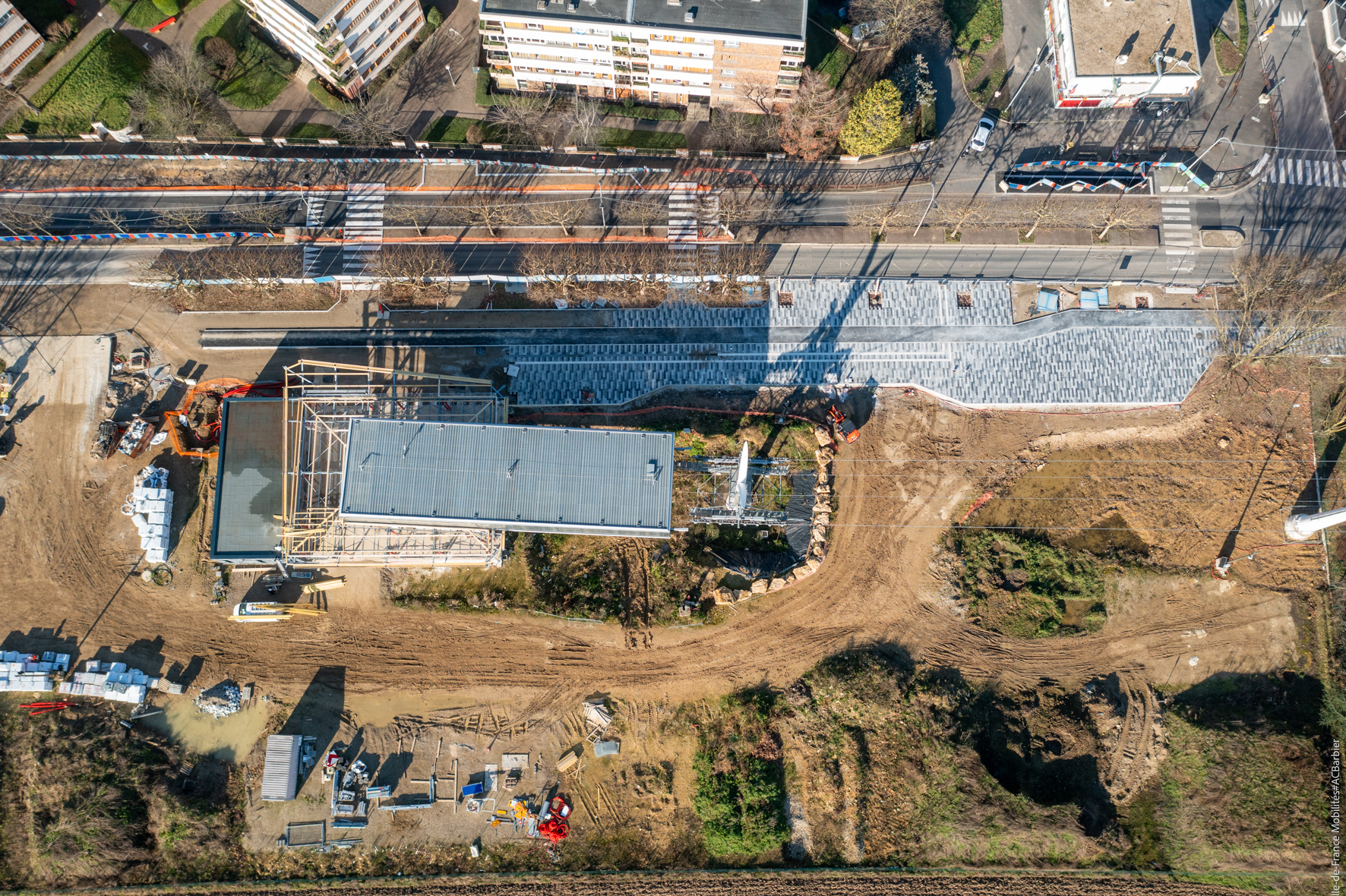 - © Île-de-France Mobilités | Installation des appuis de l'auvent de la station - décembre 2024