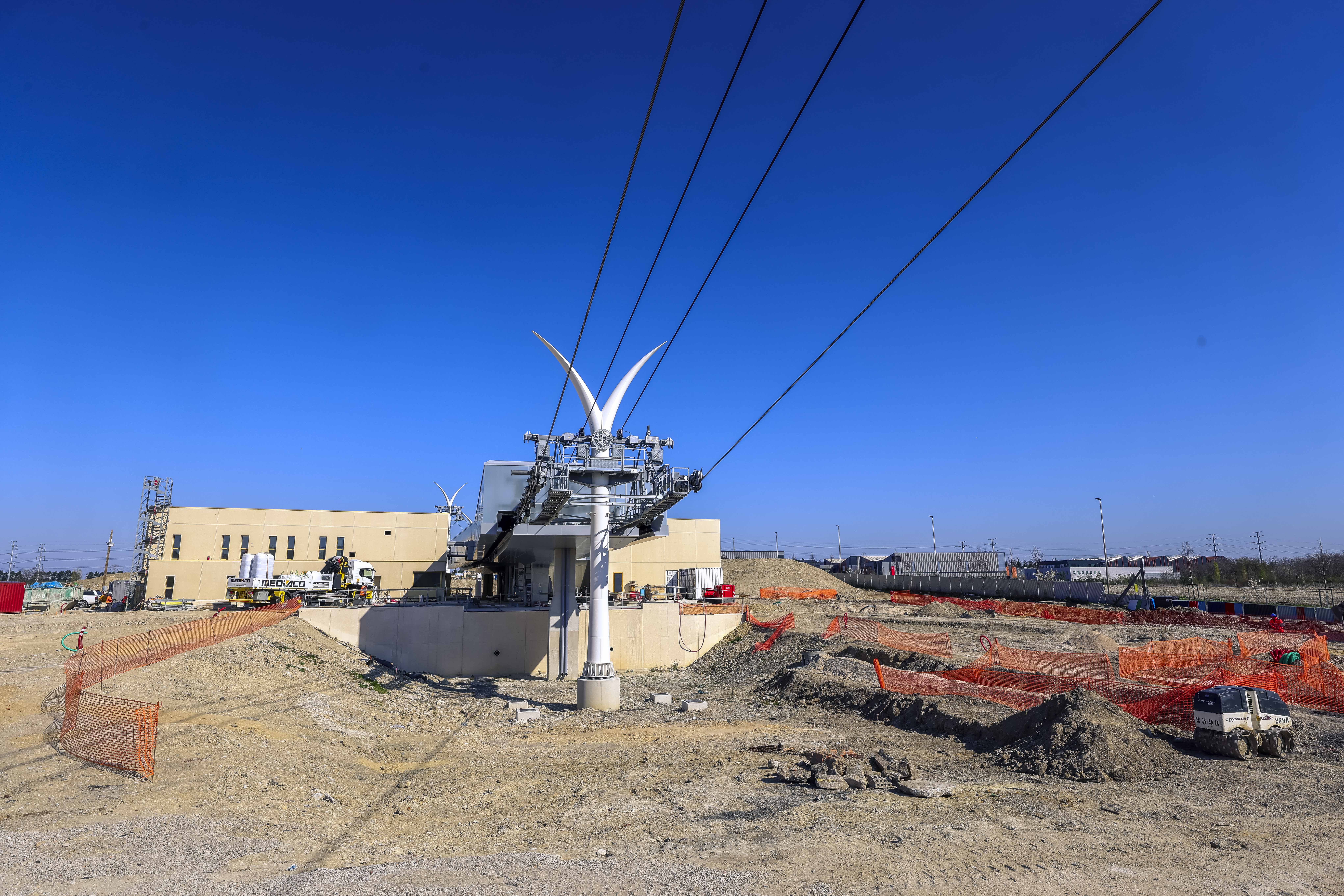 - © Île-de-France Mobilités | Levage du 1er pylône - mars 2024