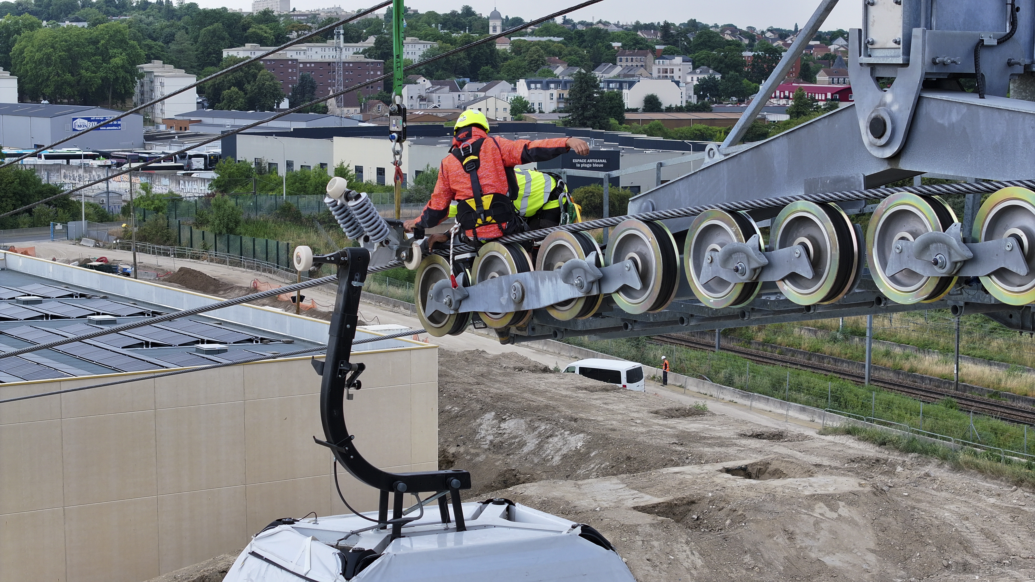 - © Île-de-France Mobilités | Déroulage du câble entre Villa Nova et La Végétale - novembre / décembre 2024
