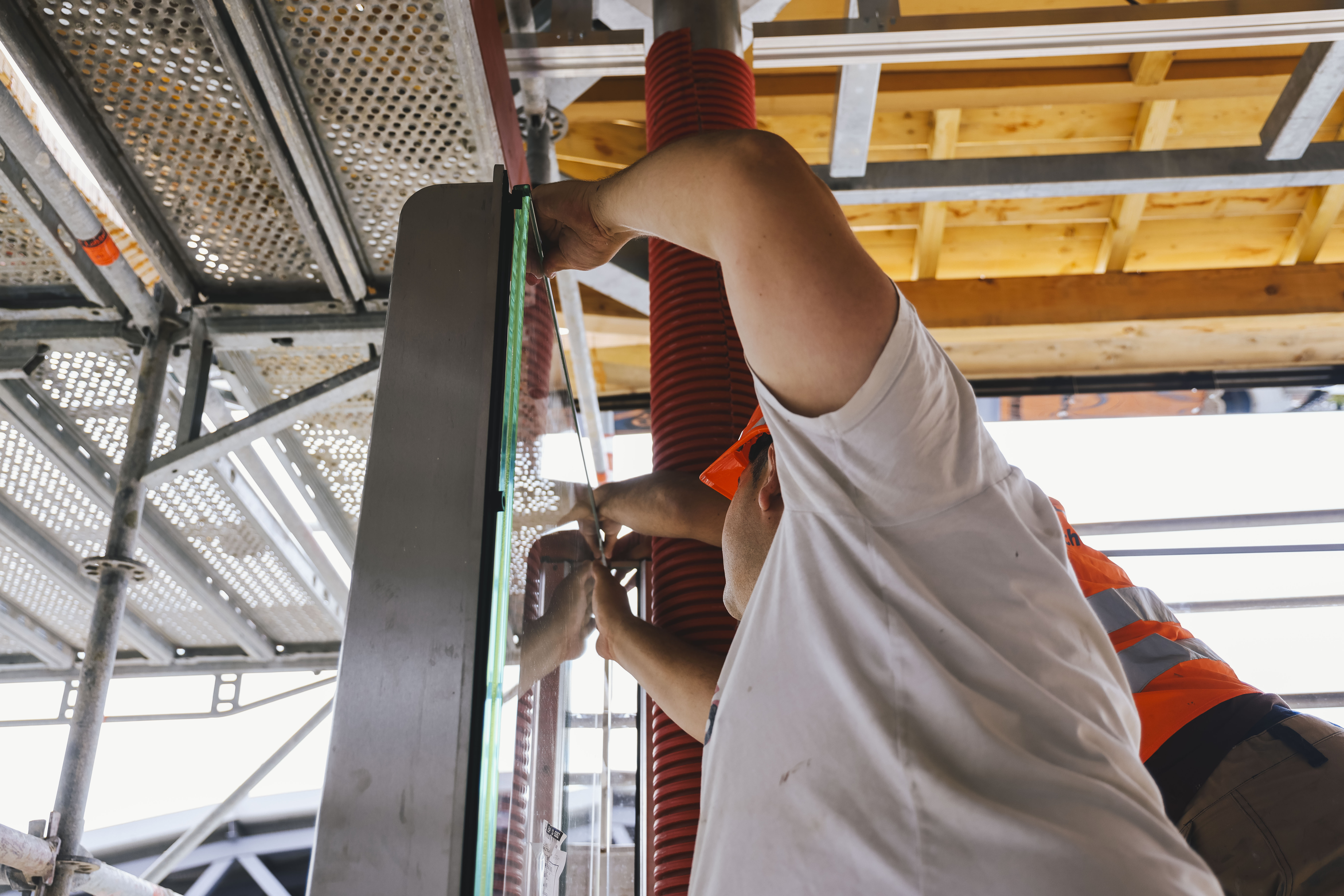 - ©Île-de-France Mobilités | Pose des vitrages de la station Villa Nova - juillet 2025
