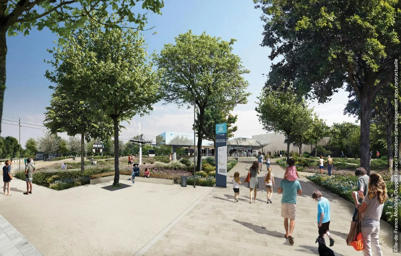 Tous les accès à la station seront de plain-pied depuis les voiries. Des jeux de pentes progressives, confortables et accessibles à tous, seront agrémentés de végétaux diversifiés et affichant une palette de couleurs changeantes au fil des saisons. Les zones plantées constitueront également des surfaces d’infiltration pour les eaux pluviales. Au nord de la station, une prairie champêtre, d’intérêt écologique et jalonnée d’arbres endémiques de la région, habillera les talus tout en évitant l’érosion des sols sur le long terme. Ces monticules proviendront des déblais émanant des travaux de la station et de l’esplanade. Tous les nouveaux espaces publics créés autour de la station proposeront des lieux de détente à l’ombre des arbres plantés dans le cadre du projet ainsi que des mobiliers de repos et d’attente.