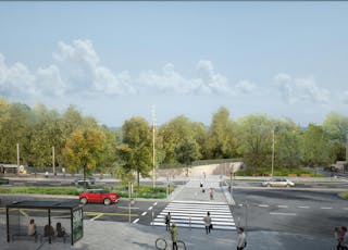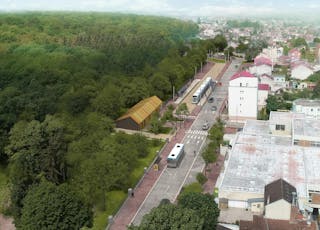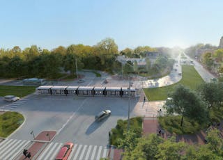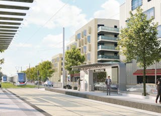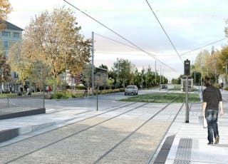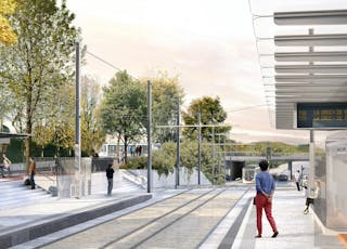 - Croix-de-Berny : Station terminus La Croix-de-Berny avenue du Général de Gaulle à Antony © A. Faugères / concepteurs : Attica et Richez-Associés.