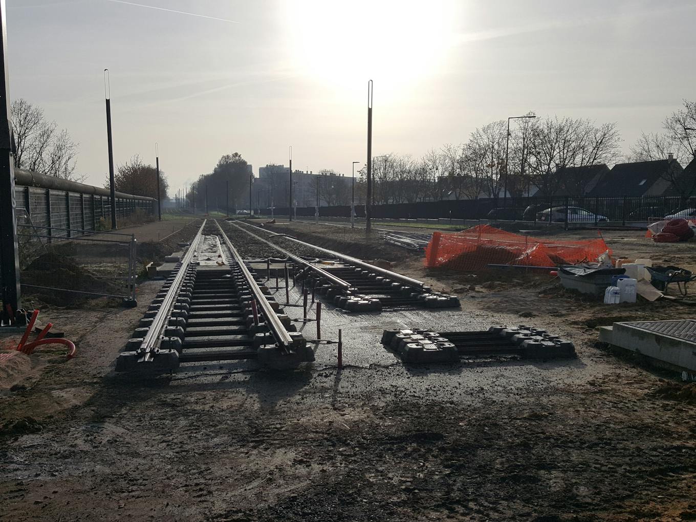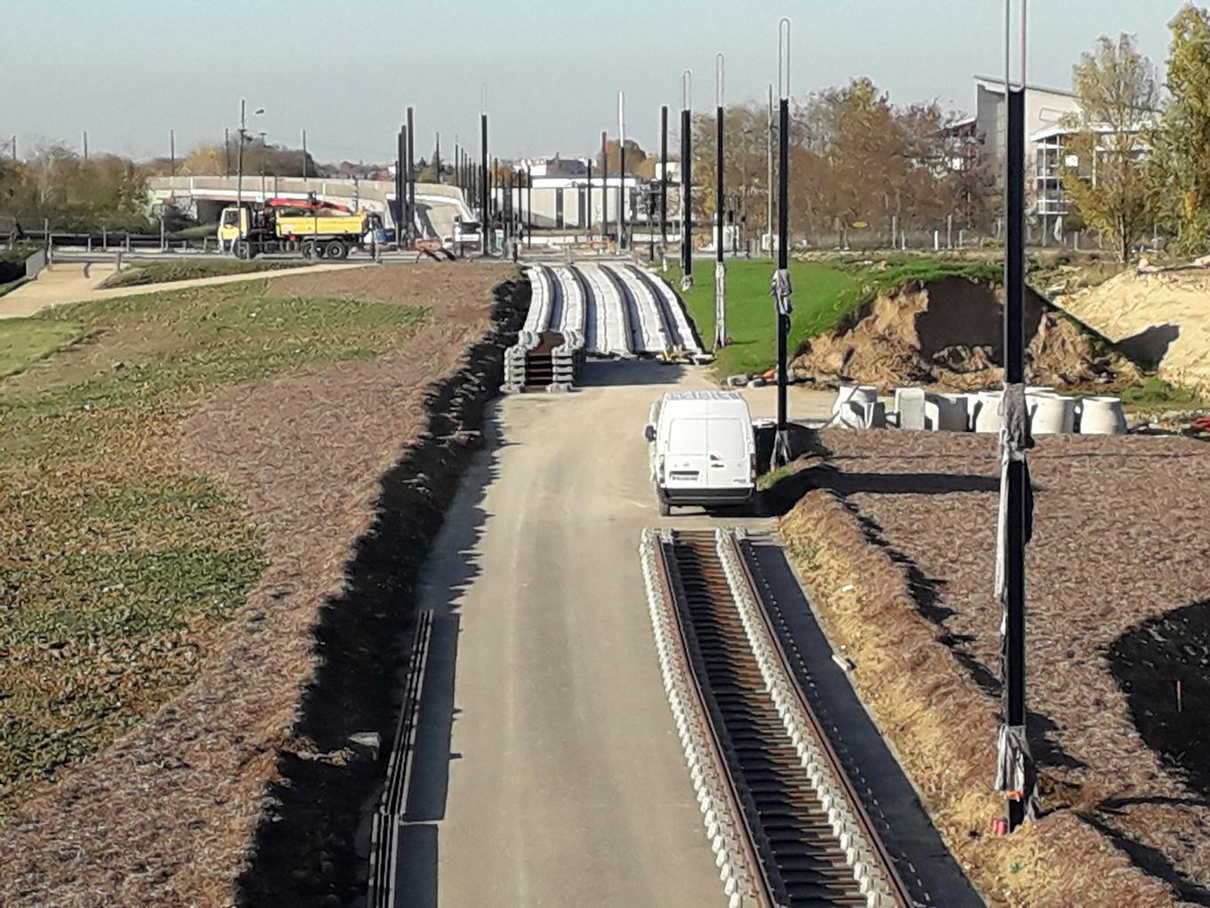 - À Ris-Orangis, la pose des rails est achevée entre l’avenue de l’Orme à Martin et l’avenue Joliot-Curie. Les équipes s’attellent désormais à la pose des rails jusqu’au Chemin du bois de l’hôtel Dieu.