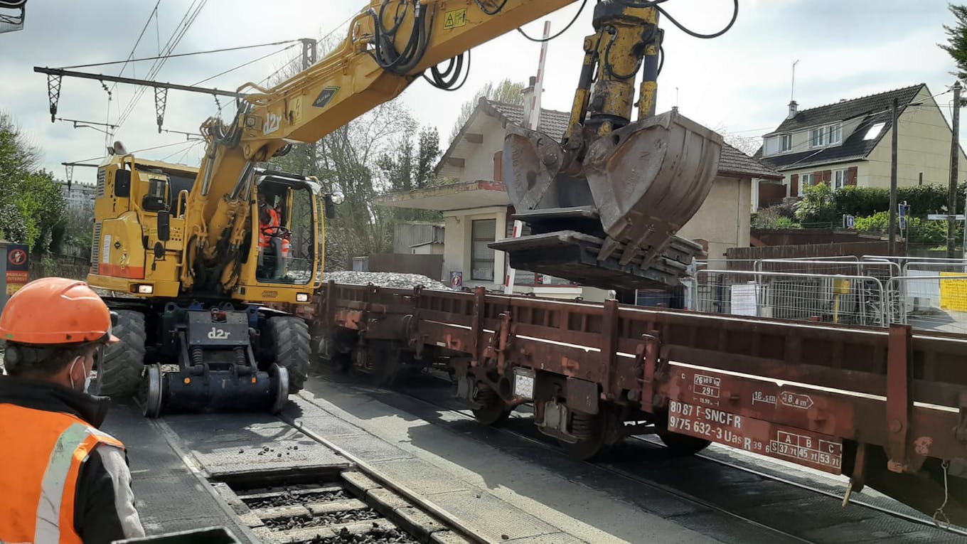 - Le remplacement des rails, des traverses et du ballast (la pierre concassée située sous les traverses et les rails)