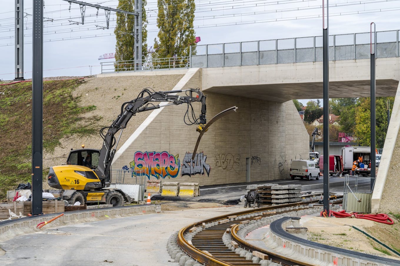 - Étape 2 : il faut ensuite déposer la voie ferrée, creuser et terrasser le talus pour réaliser le passage sous les voies.
