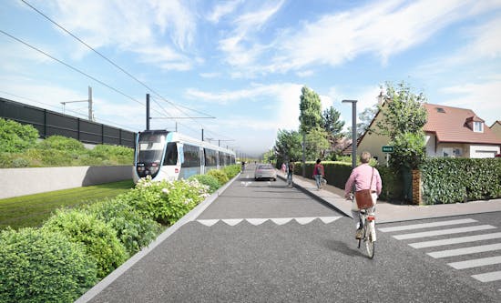 Rue Adrienne Bolland, des travaux le long de la voie ferrée sont menés par SNCF Réseau jusqu’à l’été 2026. Un mur de soutien des voies ferré provisoire puis définitif y est aménagé afin de sécuriser le terrain et de libérer l’espace pour la création de la plateforme du tramway.