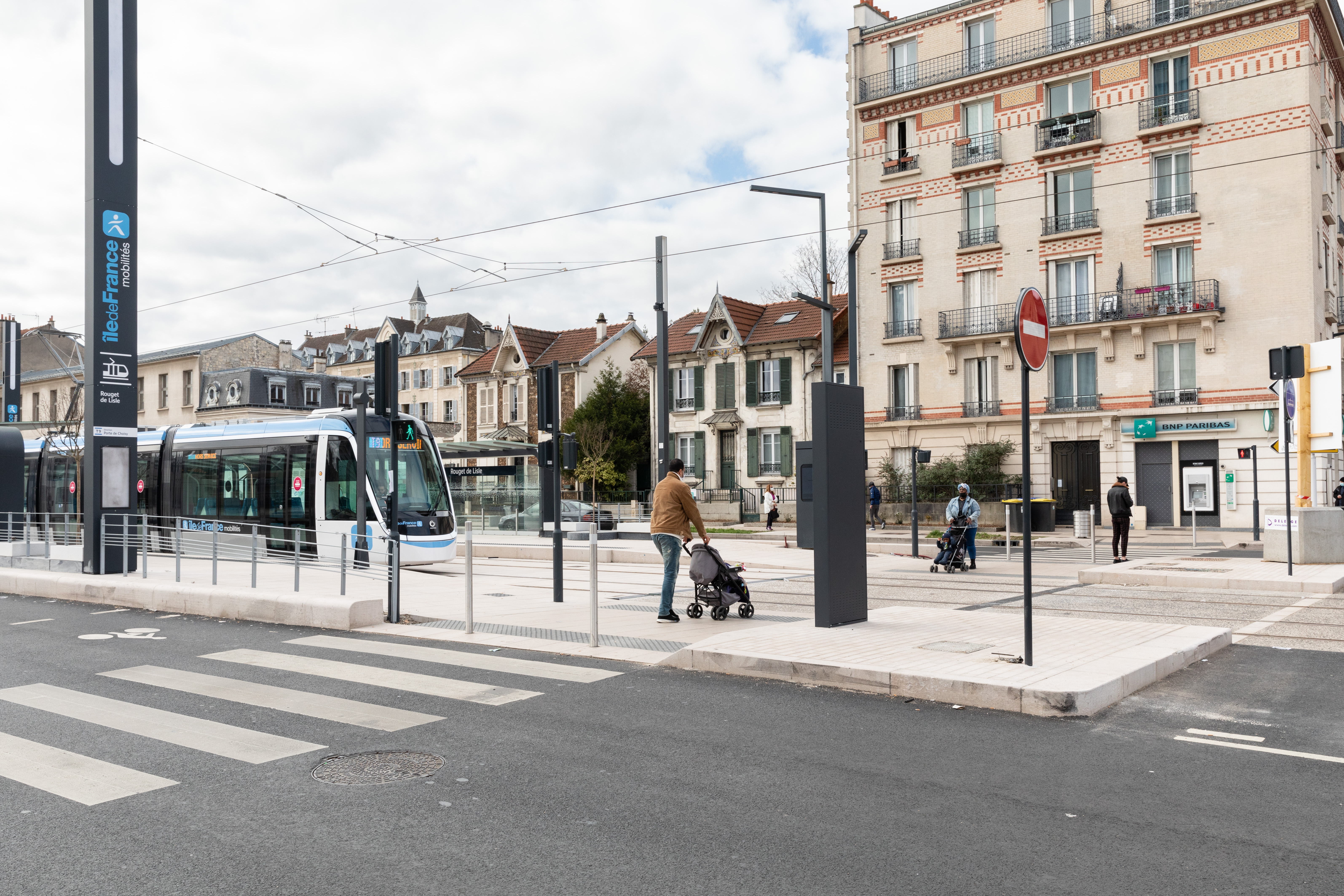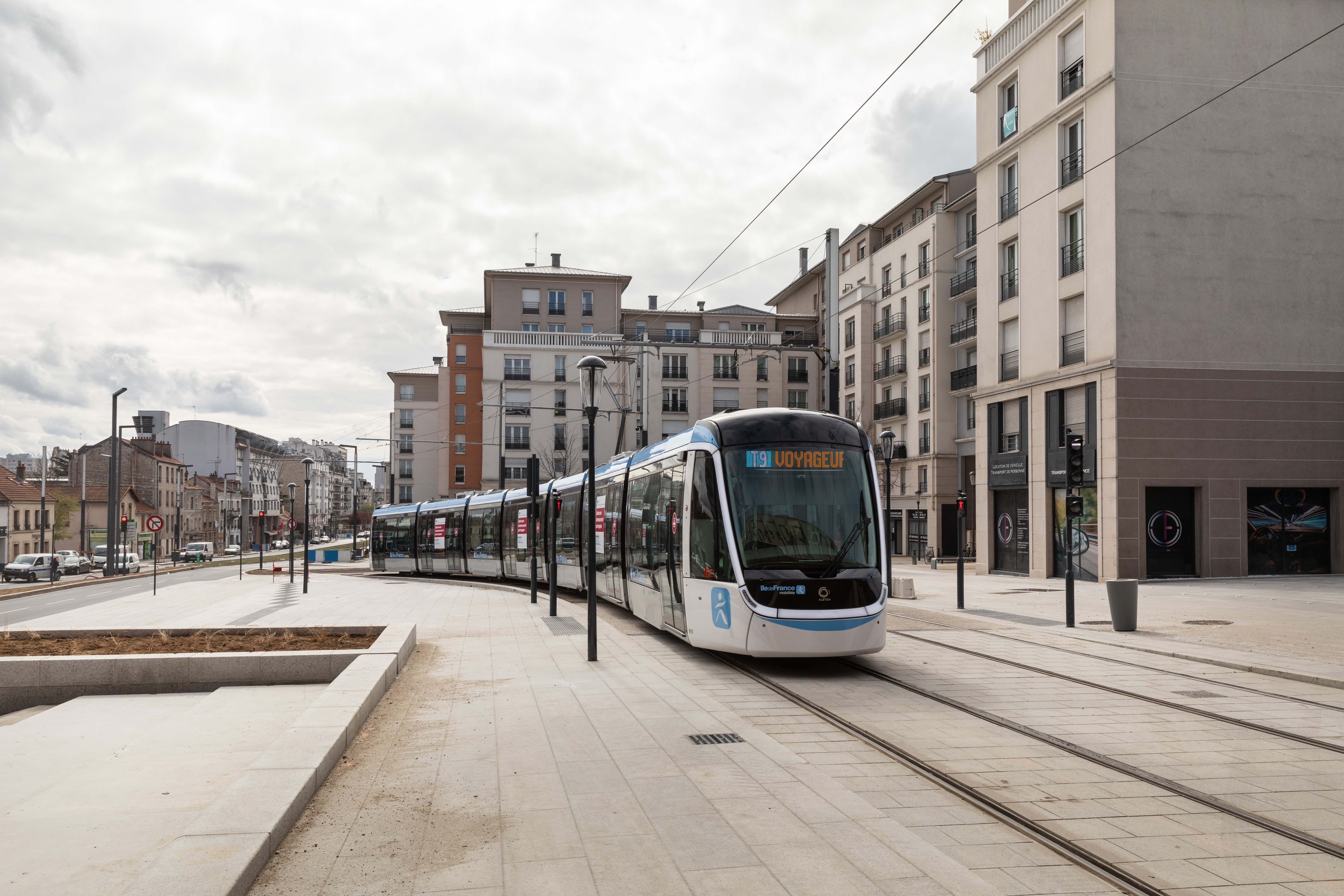 Le Tram T9 relie la Porte de Choisy (Paris 13e) au centre-ville d’Orly (94).