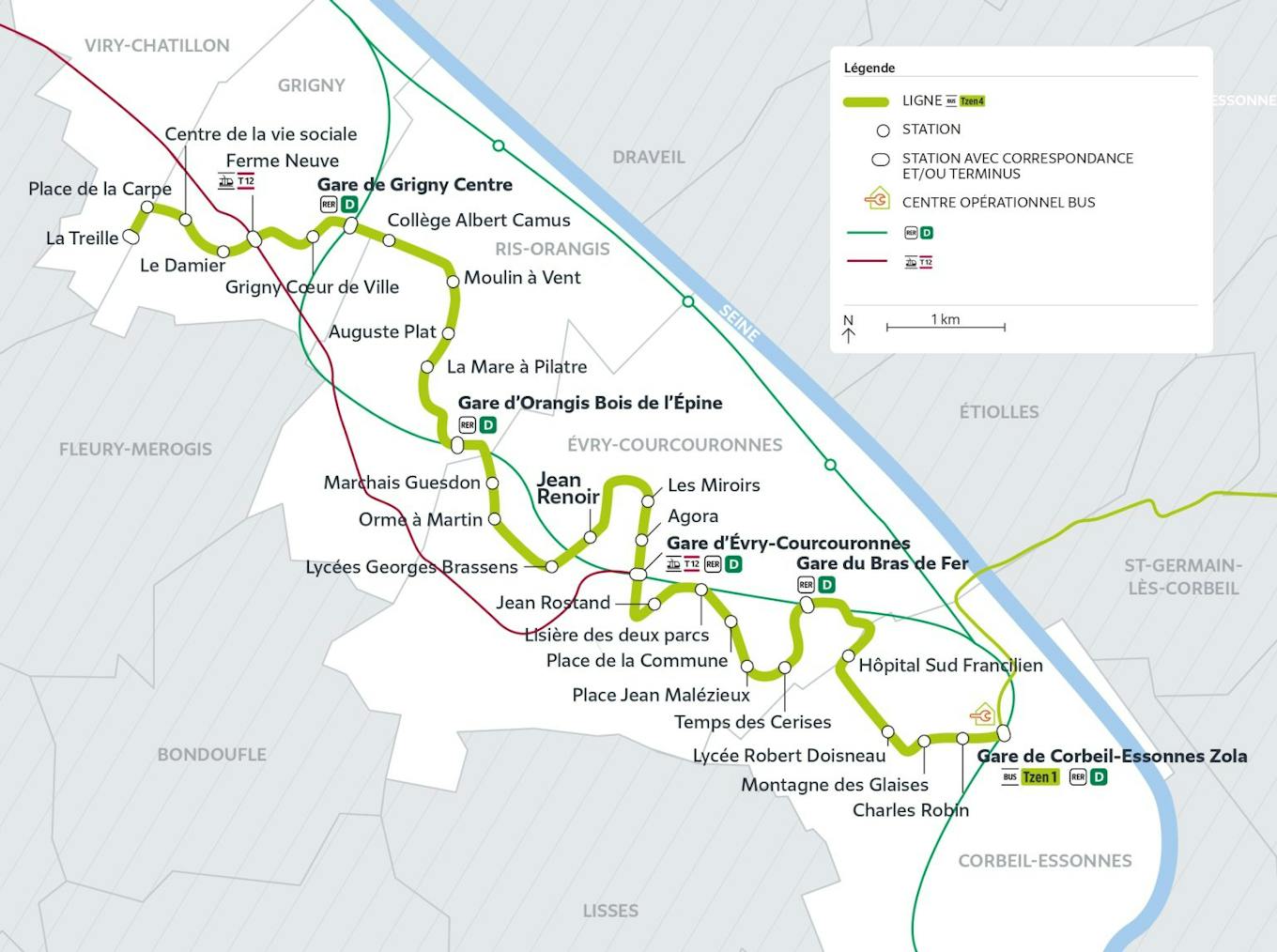 Le Tzen 4 permettra également d’emprunter le futur tram-train T12 pour poursuivre son trajet en direction de Massy ou Évry-Courcouronnes.