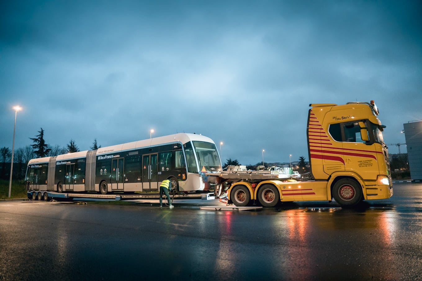 Le premier bus Tzen 4 a été livré au Centre opérationnel bus à Corbeil-Essonnes. Arrivé en convoi exceptionnel depuis l’atelier de construction, ce bus de 24 mètres, 100% électrique, avec une recharge au sol en moins de 5min est une première mondiale !