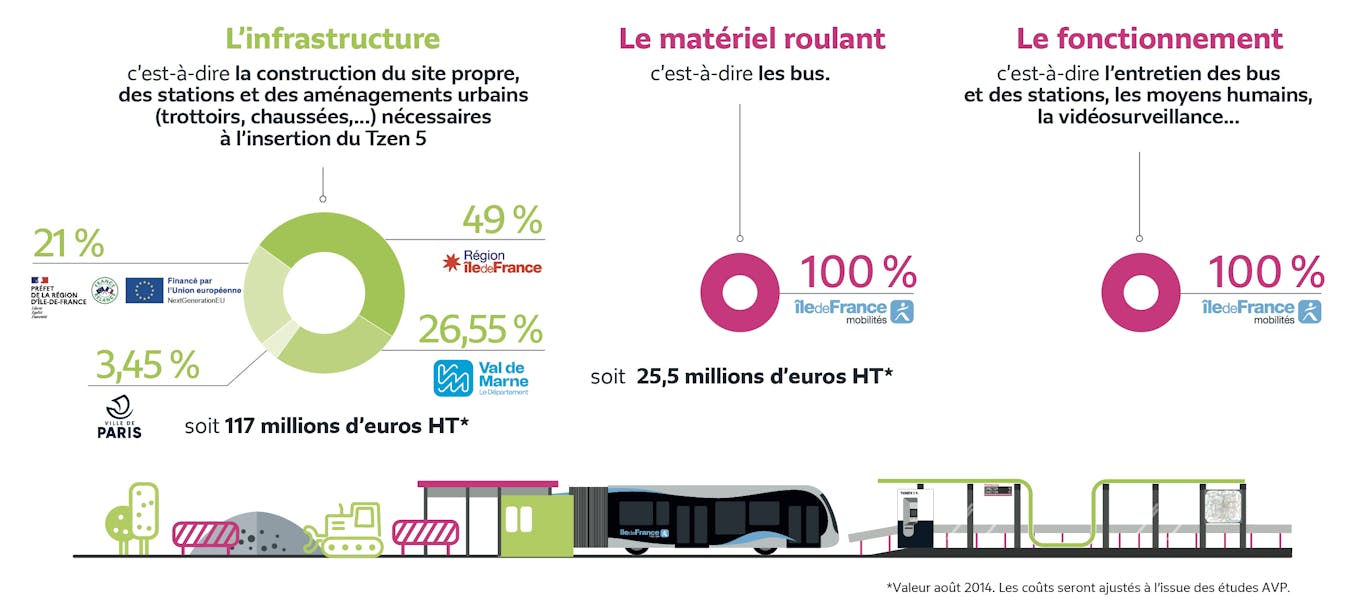 C'est-à-dire les bus, leur coût est de 25,5M€ HT. Ils sont financés par Île-de-France Mobilités à 100%.