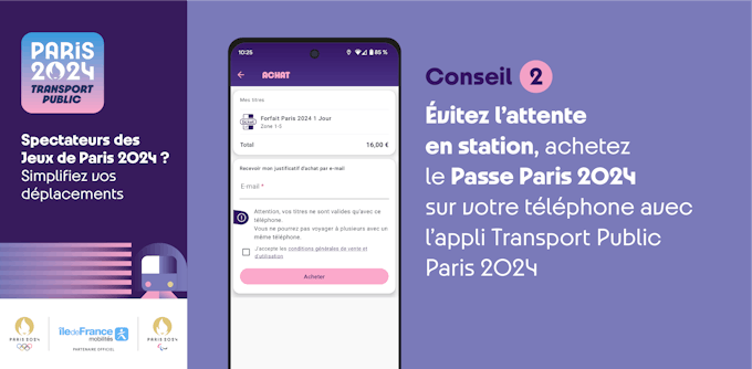 E para tornar suas viagens uma simples formalidade, a Île-de-France Mobilités desenvolveu o Transport Public Paris 2024, um aplicativo completo (disponível no Google Play e na Apple Store) para facilitar suas viagens.