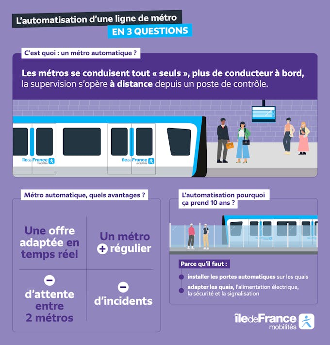 - Menos espera entre dois metrôs : a condução automática reduz a distância entre dois trens em circulação (o que é chamado de "cantão ferroviário") e, portanto, reduz o tempo de espera entre duas passagens.