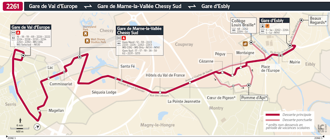- Uma nova rota estendida no ZAC du Prieuré com a criação dos "Les Champs du Prieuré" e "Centre aquatique" pára de/para a estação Val d'Europe.