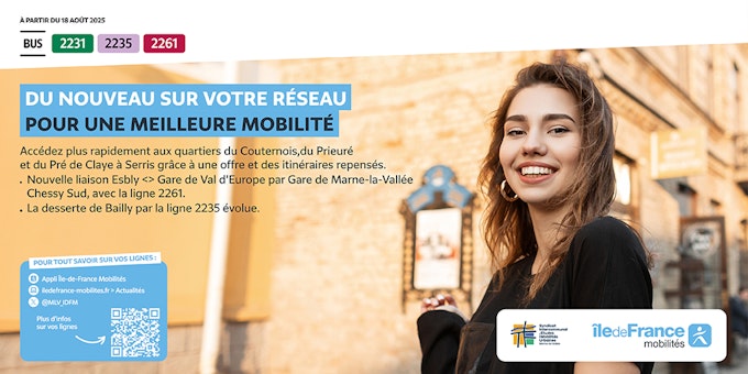 A partir de 18 de agosto de 2025, as linhas em sua área serão atualizadas para fornecer um melhor serviço aos bairros e à zona de desenvolvimento misto de Serris: