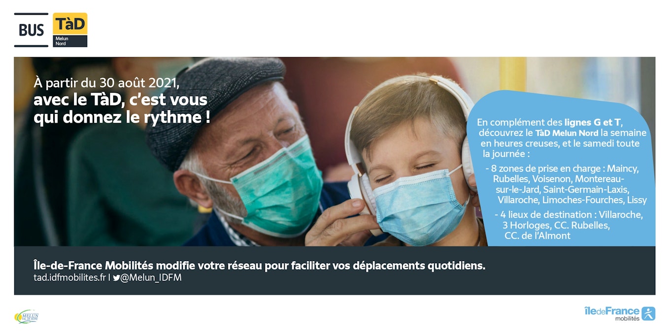 A partir de 30 de agosto de 2021, com o Transport on Demand, você define o ritmo! Além das linhas G e T, descubra o transporte sob demanda Melun Nord durante a semana fora do horário de pico e aos sábados o dia todo.