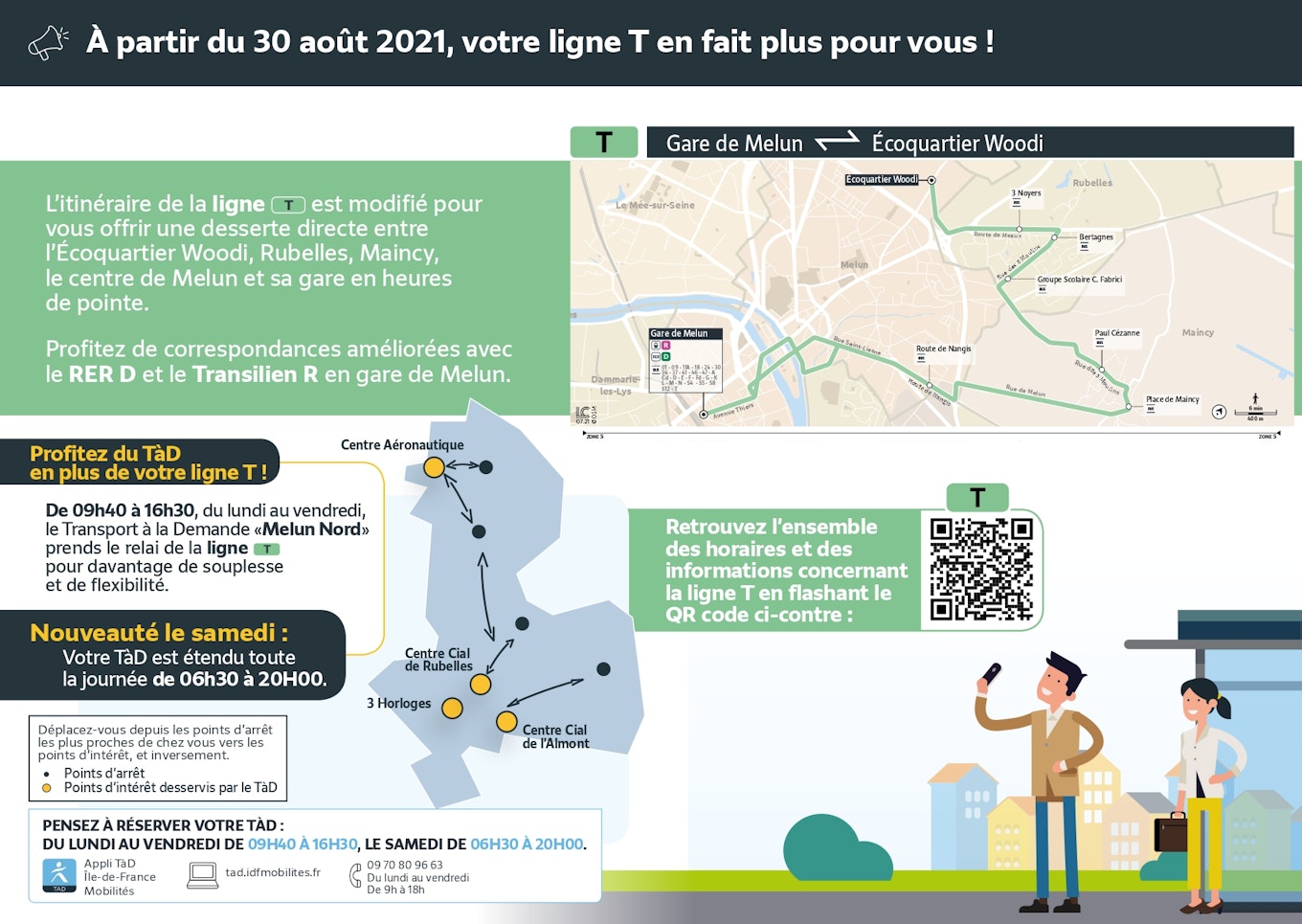 A rota da linha T foi modificada para oferecer um serviço direto entre o distrito ecológico de Woodi, Rubelles, Maincy, o centro de Melun e sua estação durante a hora do rush.