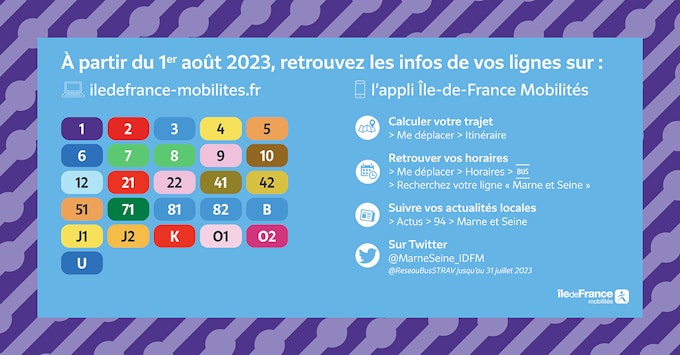 E na conta do twitter do território @MarneSeine_IDFM (@ReseauBusSTRAV até 31 de julho).