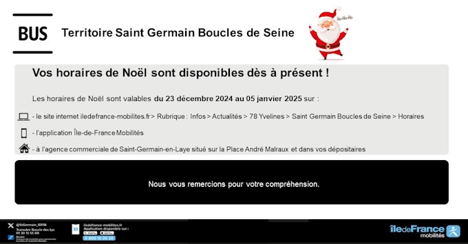 - No site iledefrance-mobilites.fr > Seção: Notícias > Notícias > 78 Yvelines > Saint Germain Boucles de Seine > Horário de funcionamento