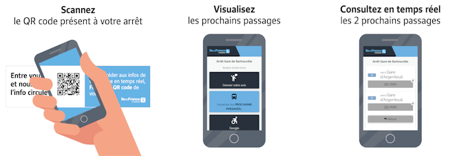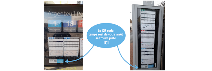 Desde 1º de dezembro de 2022, o território Argenteuil Boucles de Seine viu a implantação gradual de uma nova solução de informações aos passageiros. Os códigos QR implantados nas paradas agora permitem que você consulte de forma fácil e rápida os horários de sua fila, bem como o tempo de espera em sua parada.