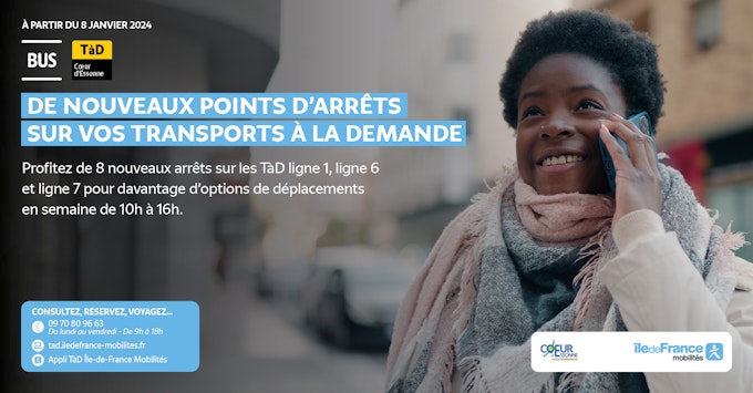Encontre todas as novidades, informações e horários do seu TàD no site da tad.iledefrance-mobilites.fr e na conta do Twitter @CoeurEs_IDFM