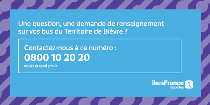 Este serviço já está implantado na área de Bièvre. Você tem alguma pergunta ou informação sobre seus ônibus? Você pode entrar em contato conosco pelo telefone 0 800 10 20 20.