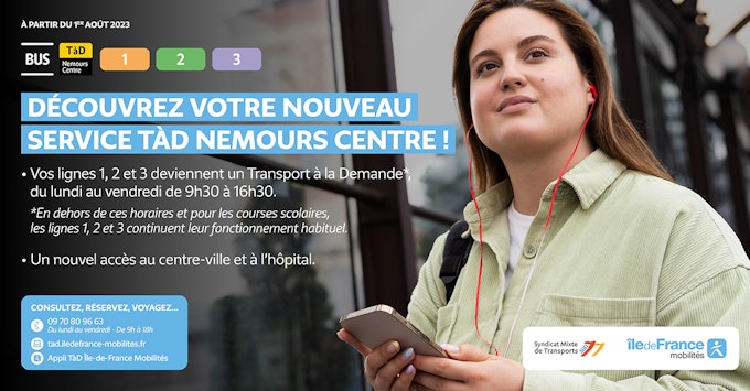 Encontre todas as novidades, informações e horários do seu TàD no site da tad.iledefrance-mobilites.fr e na conta do Twitter @Loing_IDFM (@Still_Transdev até 31 de julho de 2023).