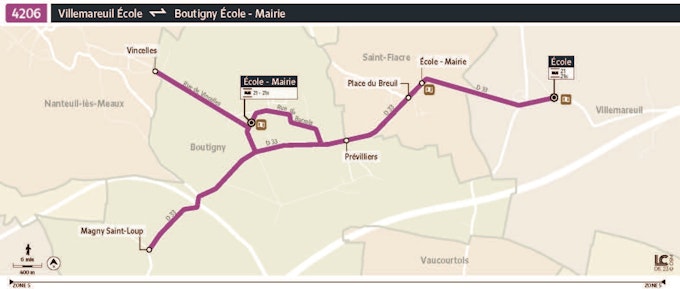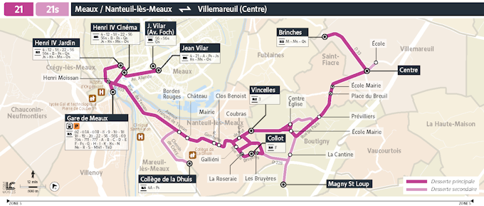 - O serviço para as escolas primárias de Villemareuil e Boutigny é integrado ao circuito escolar especial (CSS) 4206 e removido da linha 21sco. A rota e o horário permanecem inalterados. O embarque no CSS requer a obtenção de um cartão Scol'R.