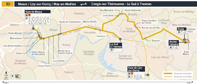 - A linha 10 é mantida apenas para servir a escola vocacional Gué-à-Tresmes de Meaux, May-en-Multien e Lizy-sur-Ourcq.
