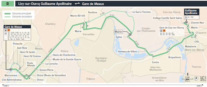 - A linha R que liga Lizy-sur-Ourcq à Gare de Meaux tem vocação escolar para os habitantes dos bairros do norte da cidade ("Hauts de Chantereine", "La Corniche" e "Grosse Pierre").