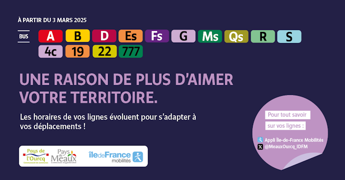 Para melhorar a regularidade de suas linhas, foram realizados estudos de tempo de viagem em várias linhas na área de Meaux e Ourcq, a fim de se adaptar ao seu dia a dia e permitir que você viaje com total tranquilidade.