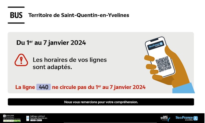 Os horários de suas linhas são adaptados no território de Saint-Quentin-en-Yvelines.