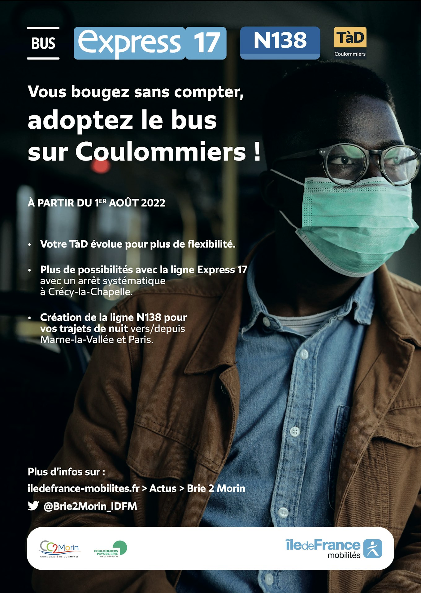 A partir de 1º de agosto, sua nova linha N138 conectará Coulommiers a Paris Gare de Lyon, via Marne-la-Vallée, com 4 viagens de ida e volta por noite entre 00:00 e 04:00. Esta linha funcionará 7 dias por semana, durante todo o ano e será um verdadeiro retransmissor para as linhas Train P, RER A e Express 17 para suas viagens noturnas.