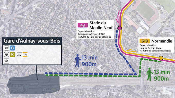 - Linha 43: o terminal Gare d'Aulnay-sous-Bois será transferido para a parada Stade du Moulin Neuf