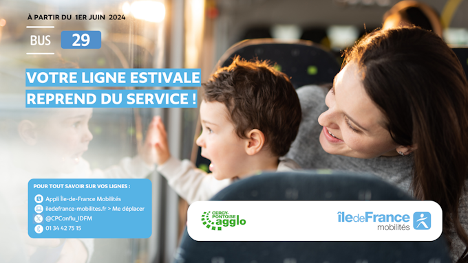 Sua linha de verão funcionará de 1º de junho a 29 de setembro de 2024 para atender a Île-de-Loisirs de Neuville-sur-Oise.
