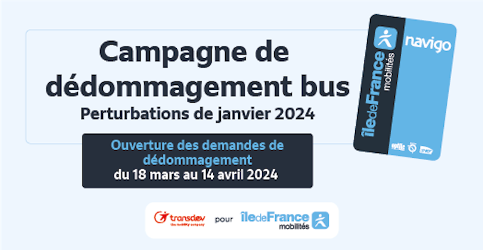 Na sequência das perturbações de janeiro de 2024 na região do Centro e do Sul de Yvelines, os estudantes titulares de um título de transporte escolar válido em janeiro de 2024 podem, excecionalmente, ser indemnizados de acordo com as condições de indemnização estabelecidas pela Île-de-France Mobilités.
