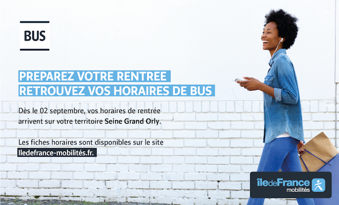 Estão disponíveis os horários válidos a partir de 2 de setembro de 2024 para as linhas de ônibus do território Seine Grand Orly.