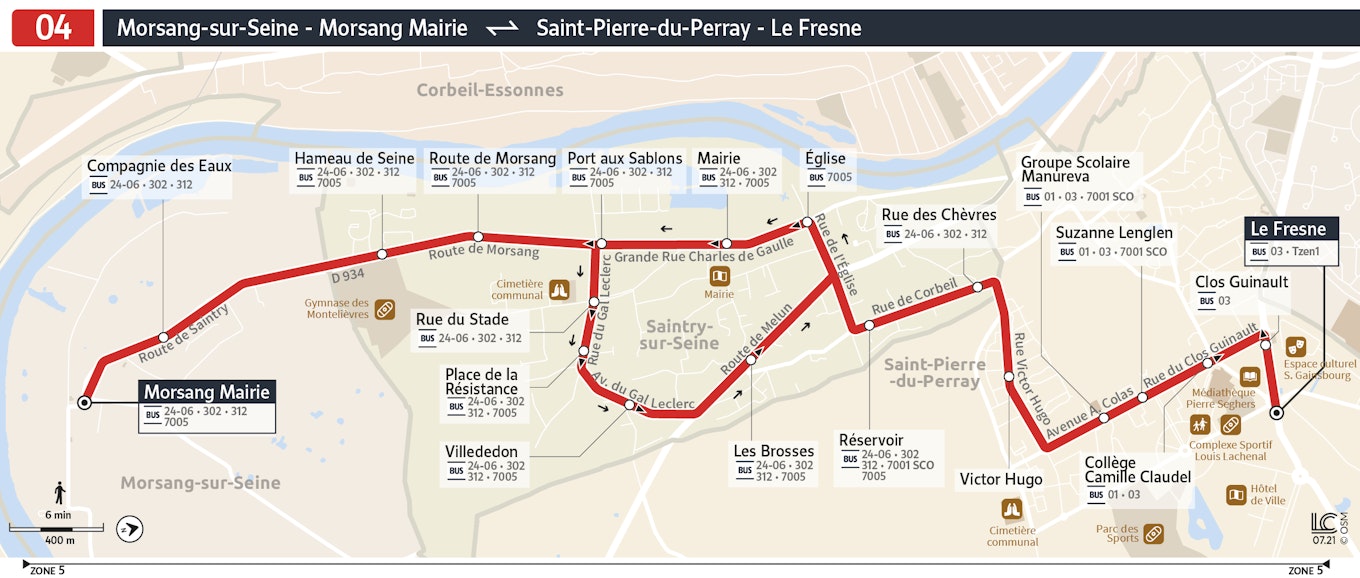As paradas servidas em Morsang-sur-Seine são as seguintes: Morsang Mairie, Compagnie des Eaux.