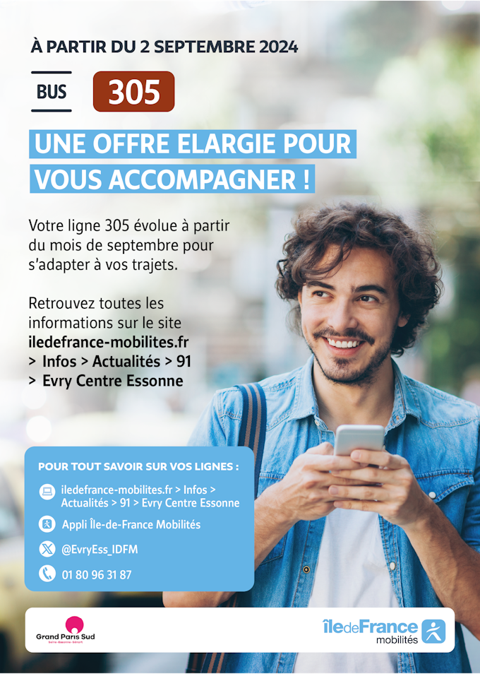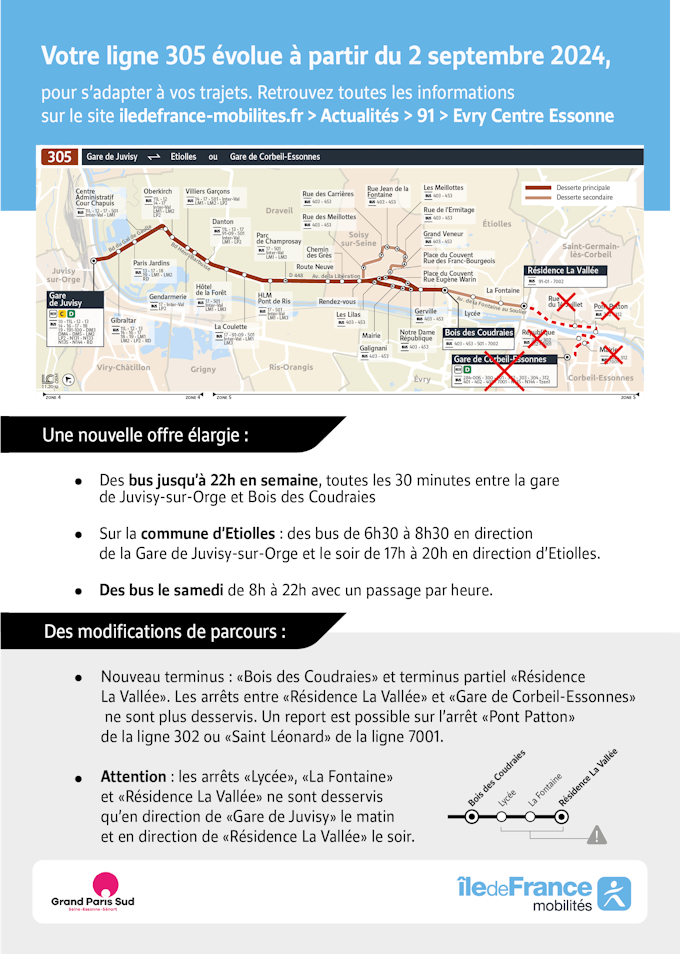 Sua linha 305 está evoluindo a partir de 2 de setembro de 2024, para se adaptar às suas necessidades.