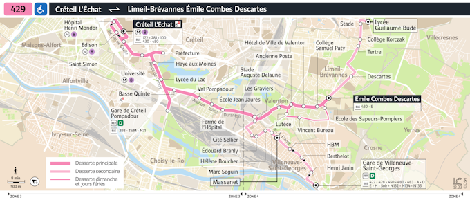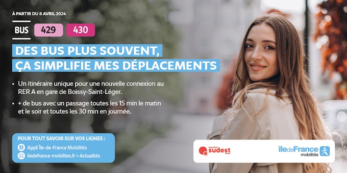 - A nova linha 429 (antiga linha O1) retoma o traçado da antiga linha J entre "Les Graviers" e o terminal da linha em Limeil-Brévannes. Serve a escola secundária Guillaume Budé.