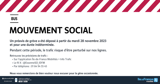 Devido ao aviso de greve apresentado pelos sindicatos, o tráfego provavelmente será interrompido a partir de terça-feira, 28 de novembro.