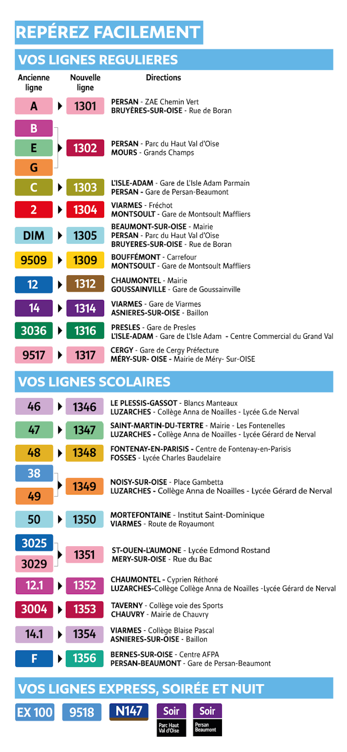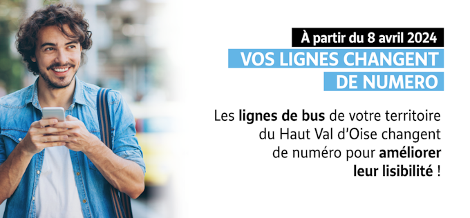A Île-de-France Mobilités quer melhorar a legibilidade da rede regional de ônibus, trabalhando na numeração das linhas de ônibus para que cada uma tenha um número único. O seu território do Alto Val d'Oise beneficiará desta nova numeração a partir de 8 de abril de 2024.