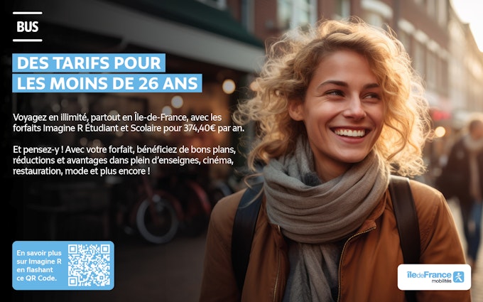 Viaje sem limites, para qualquer lugar da Île-de-France com os pacotes Imagine R Student e School por € 374,40 por ano.