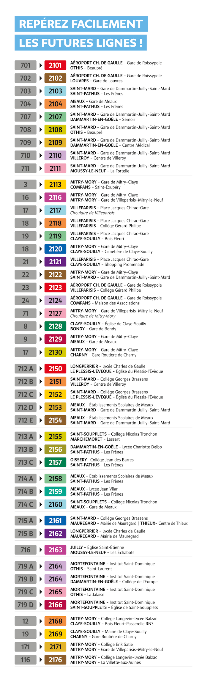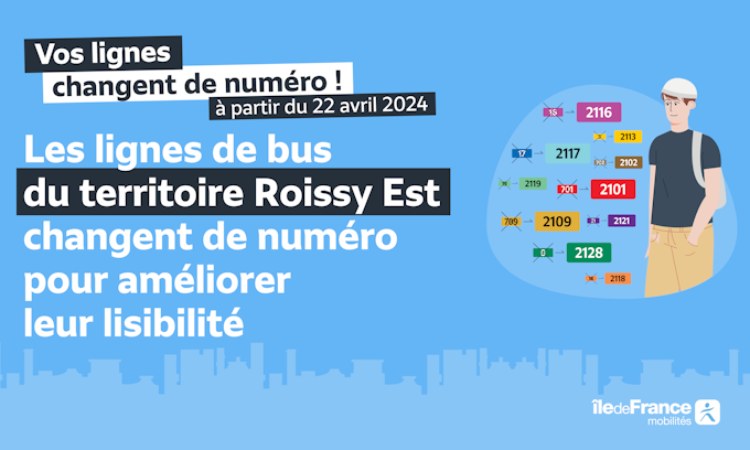 A Île-de-France Mobilités quer melhorar a legibilidade da rede regional de ônibus, trabalhando na numeração das linhas de ônibus para que cada uma tenha um número único. O seu território, Roissy Est, beneficiará desta nova numeração a partir de 22 de abril de 2024.