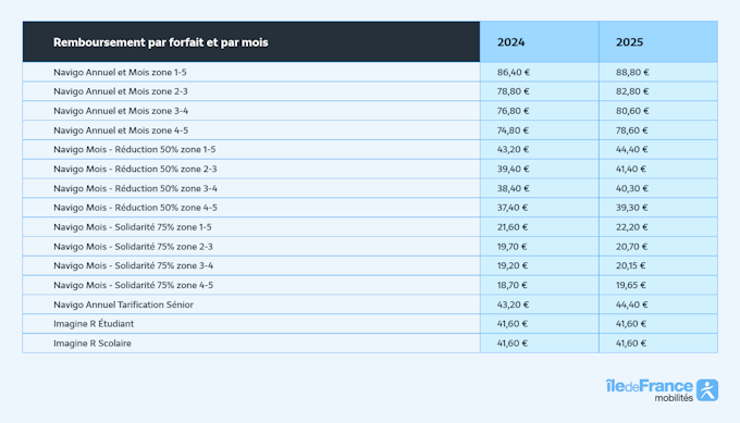 - Navigo Mois (todas as zonas, zonas 2-3, zonas 3-4, zonas 4-5)